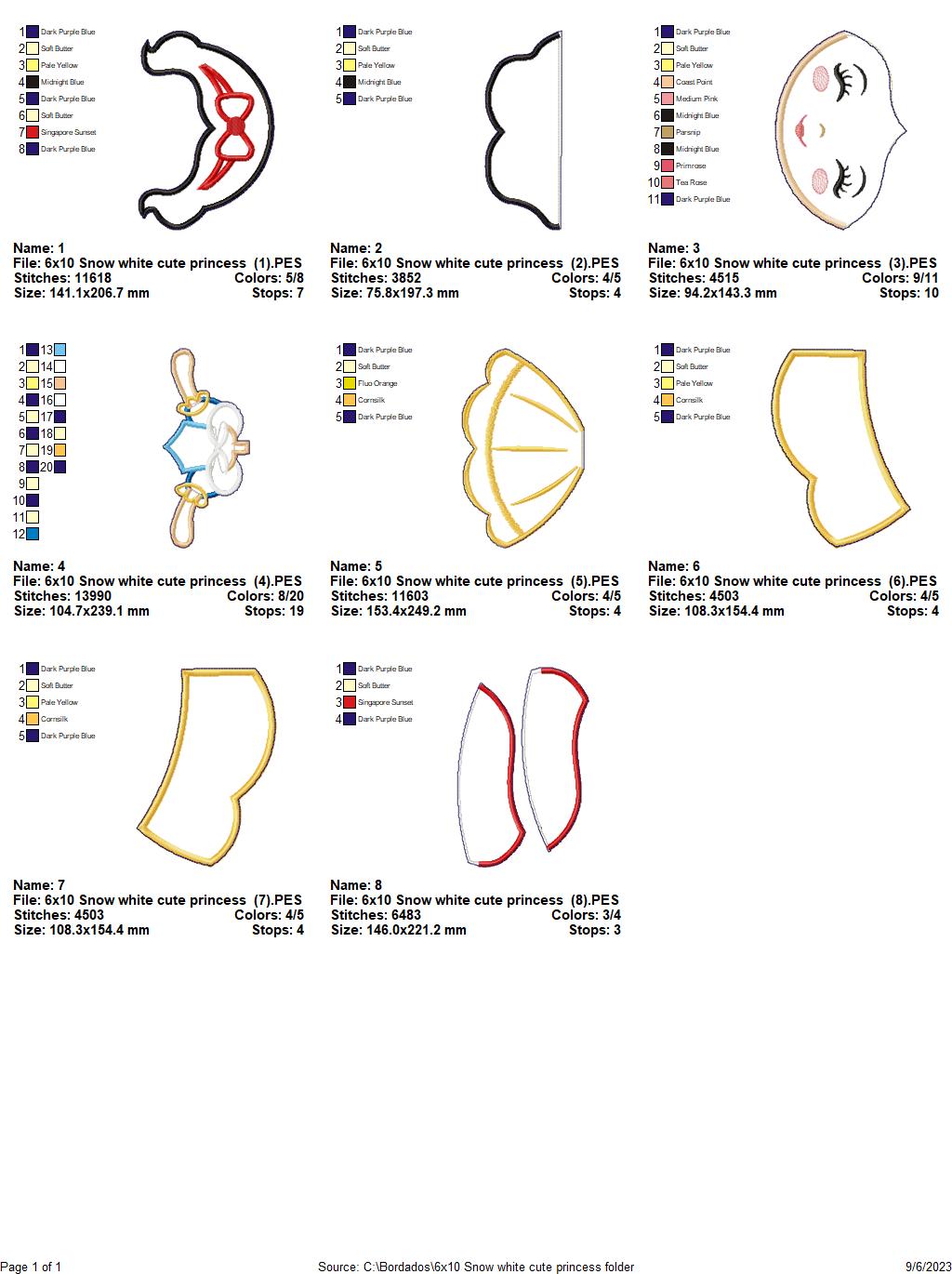 Snow White Cute Princess Ornament - ITH Project - Machine Embroidery Design
