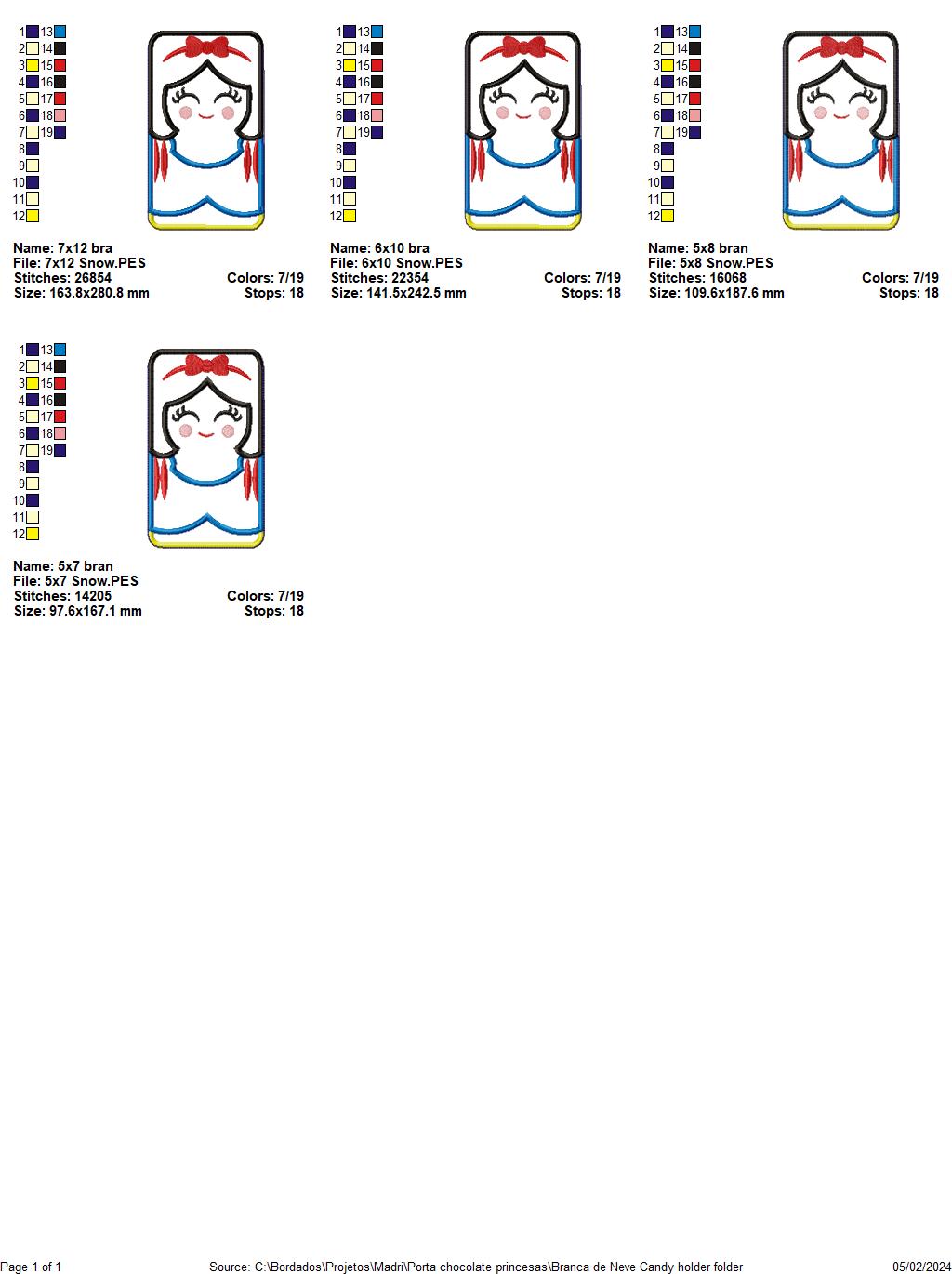 Experience the magic of Snow White with our machine embroidery design! Instantly download this enchanting design and add a touch of whimsy to any project. Perfect for creating one-of-a-kind candy holders fit for a princess. Indulge your creativity and bring a fairy tale to life!
