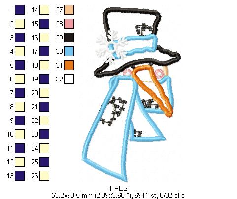 Snowman - 6 Sizes - Applique - Machine Embroidery Design