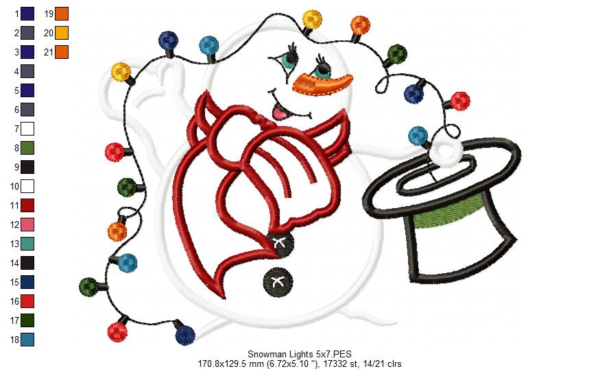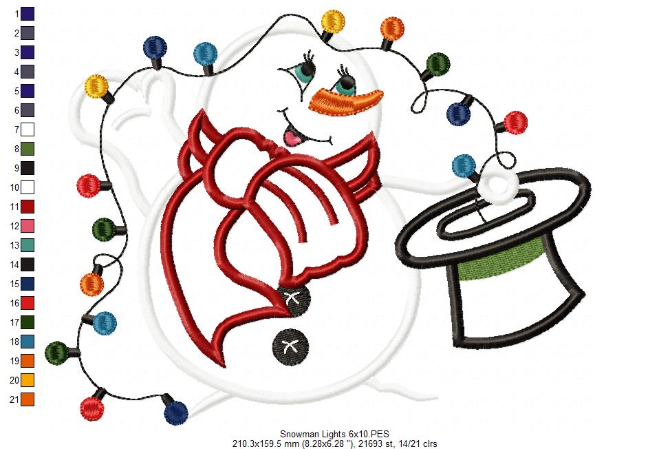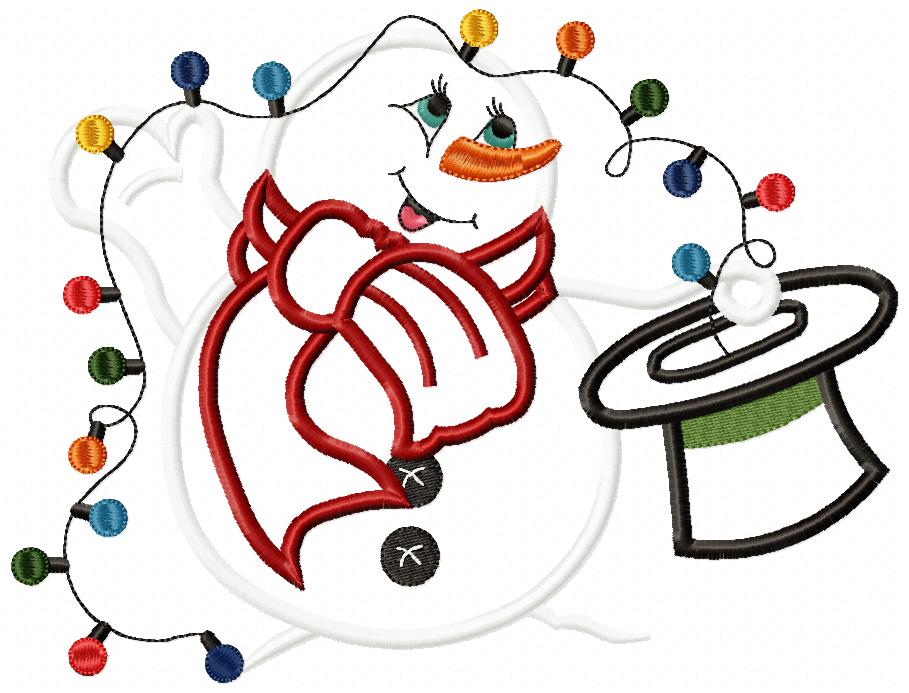 Magician Snowman and Christmas Lights - Applique Machine Embroidery Design