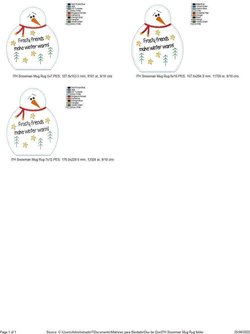 Snowman Mug Rug - ITH Project - Machine Embroidery Design
