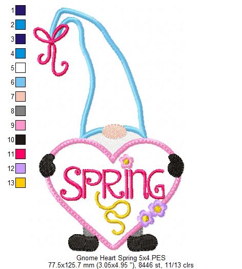Spring Gnome Heart - Applique