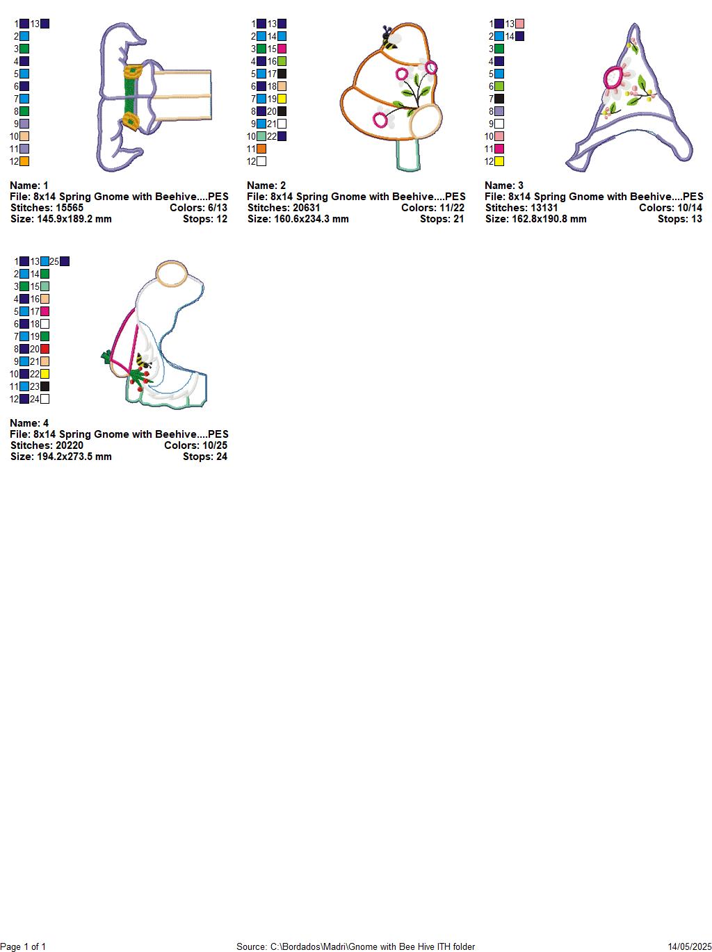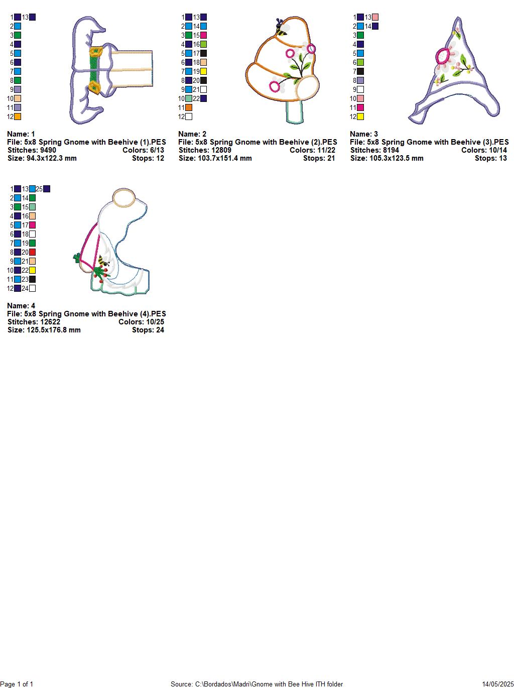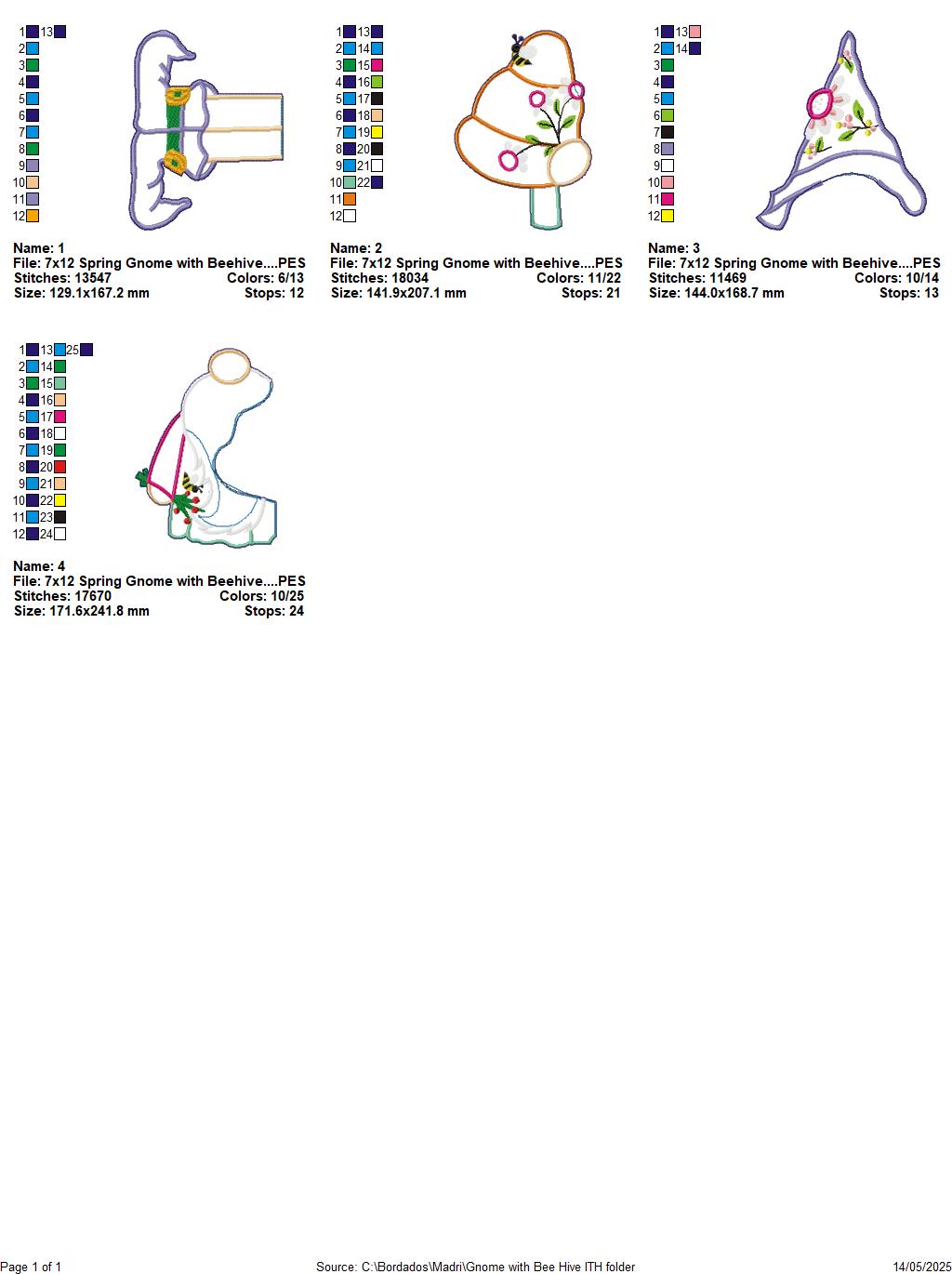 Spring Gnome with Beehive Ornament - ITH Project - Machine Embroidery Design