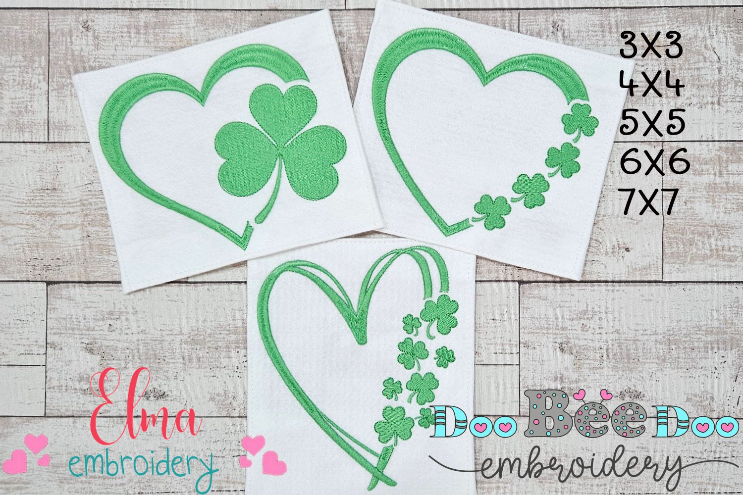 St. Patrick's Heart Shape with Clover Set - Fill Stitch - Set of 3 designs - Machine Embroidery Design