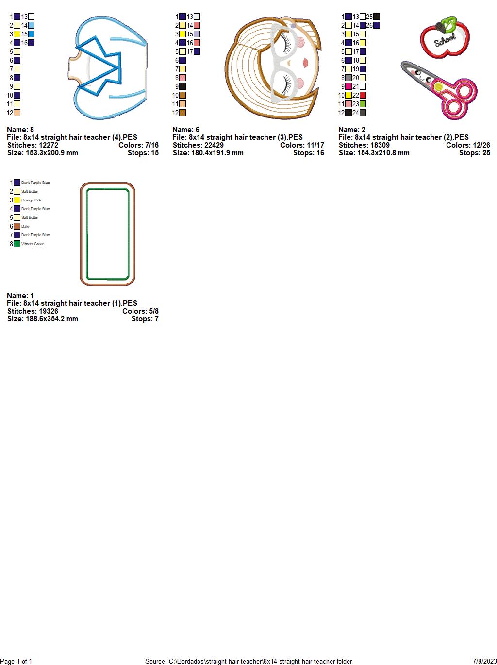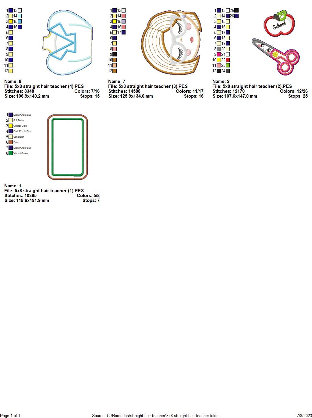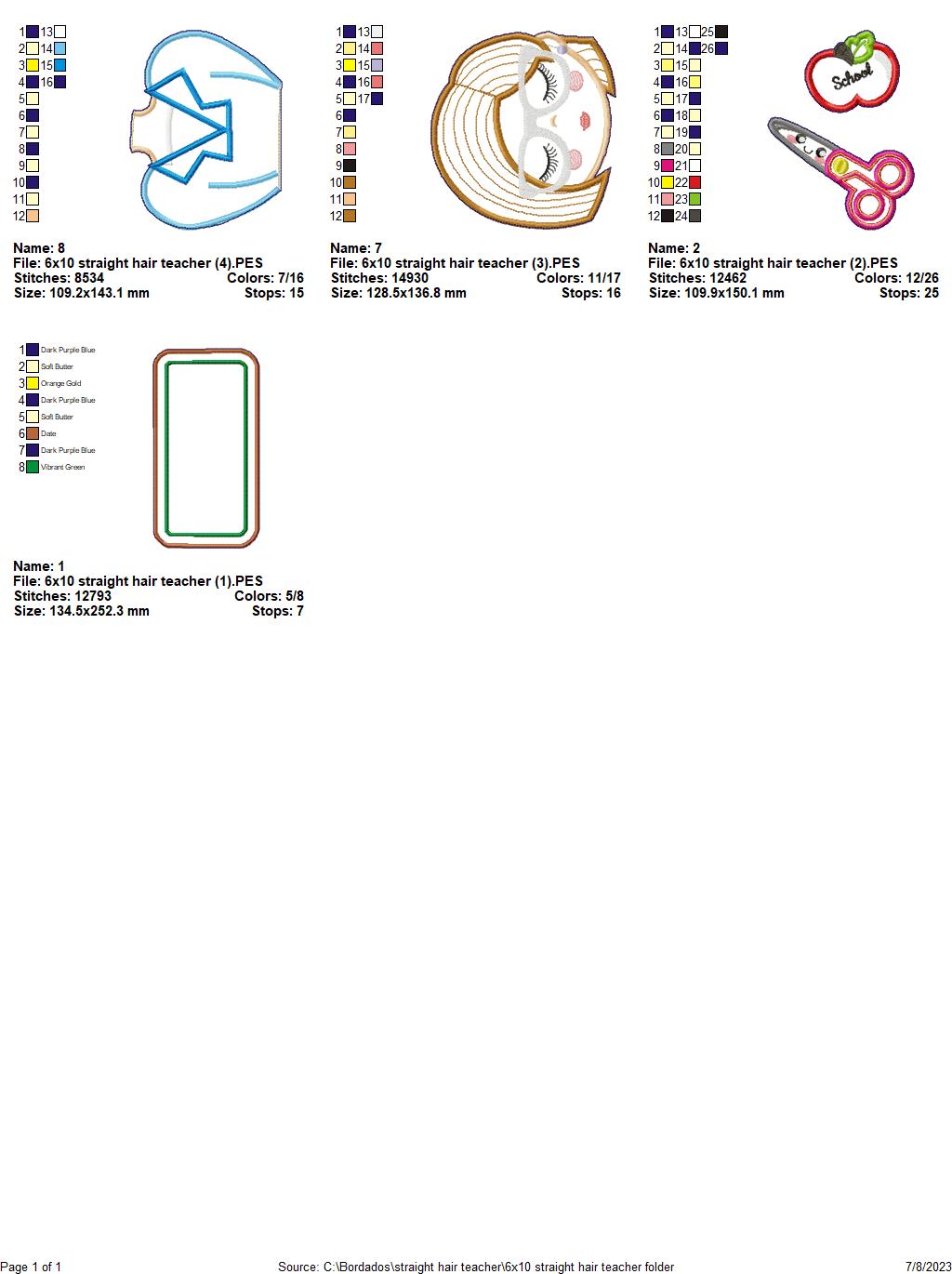 Straight Hair Teacher - ITH Project - Machine Embroidery Design