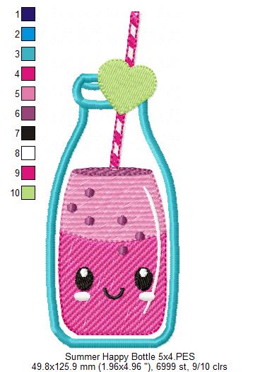 Summer Tropical Happy Bottle Drink - Applique