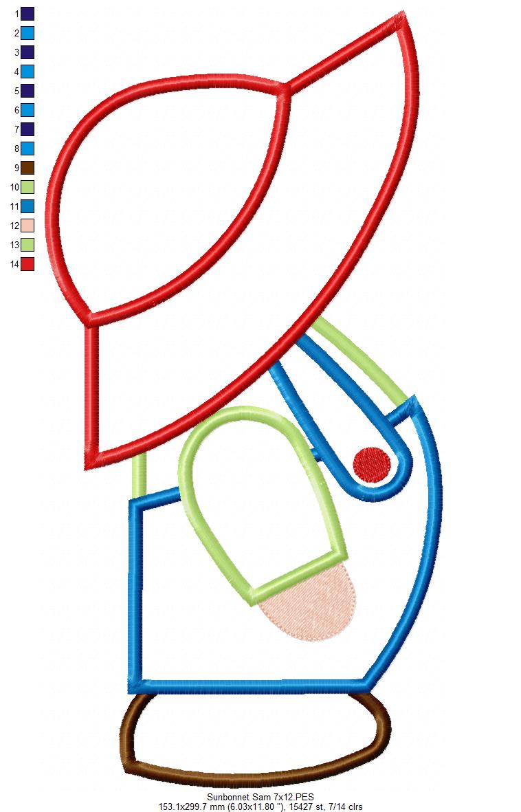 Sunbonnet Sam - Applique - Machine Embroidery Design