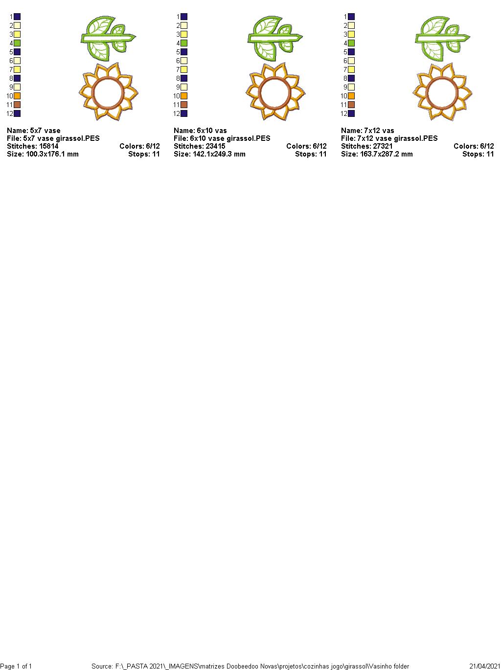Sunflower Vase Ornament - ITH Project - Machine Embroidery Design