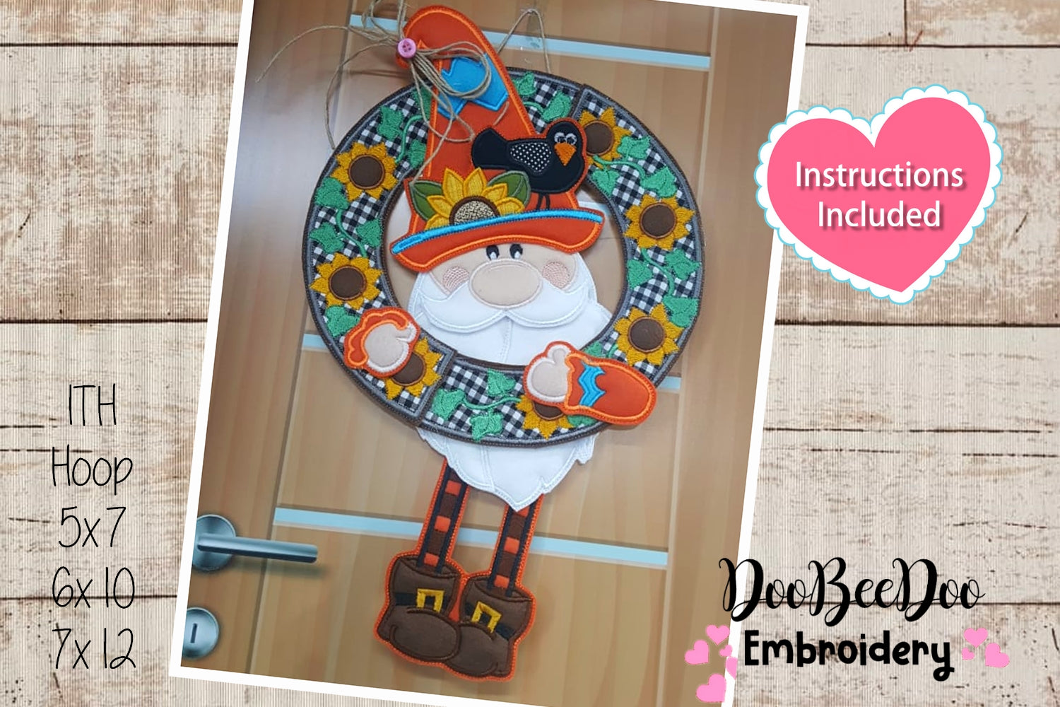 Sunflowers Wreath Gnome - ITH Project - Machine Embroidery Design