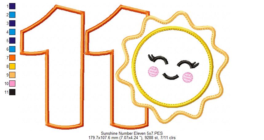 Sunshine Number Eleven 11 Elenth Birthday - Applique