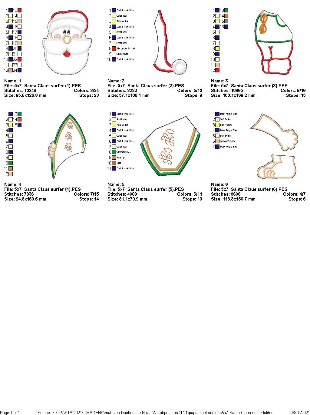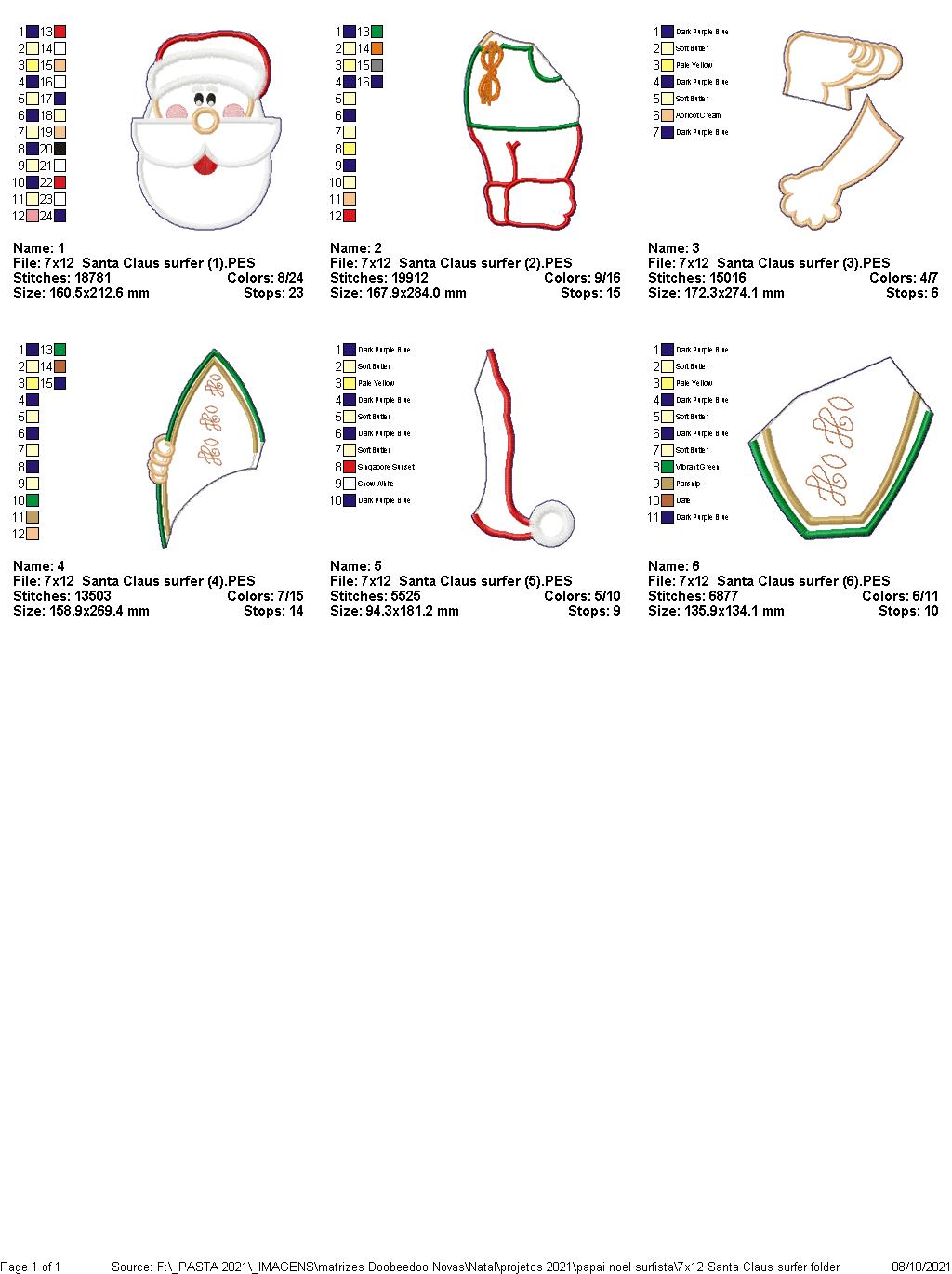 Surfer Santa Claus Vase Ornament - ITH Project - Machine Embroidery Design