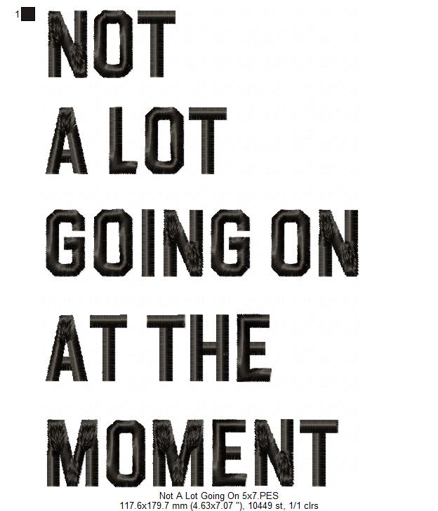 Are you a Swiftie who's been feeling a little "Not A Lot Going On At The Moment"? Well, we've got your pick-me-up! Our Taylor Swift Eras Tour not A Lot Going On At The Moment fill stitch is an instant download of embroidery designs in multiple sizes (4x4, 5x4, 5x7, 5x8, 6x10, 7x12). Get your "Swifty-fix" and add some sparkle to your wardrobe!