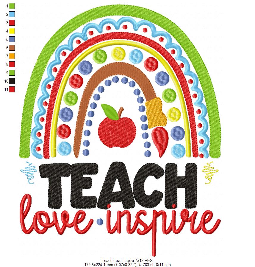 Boho Rainbow Teach Love Inspire - Fill Stitch - Machine Embroidery Design