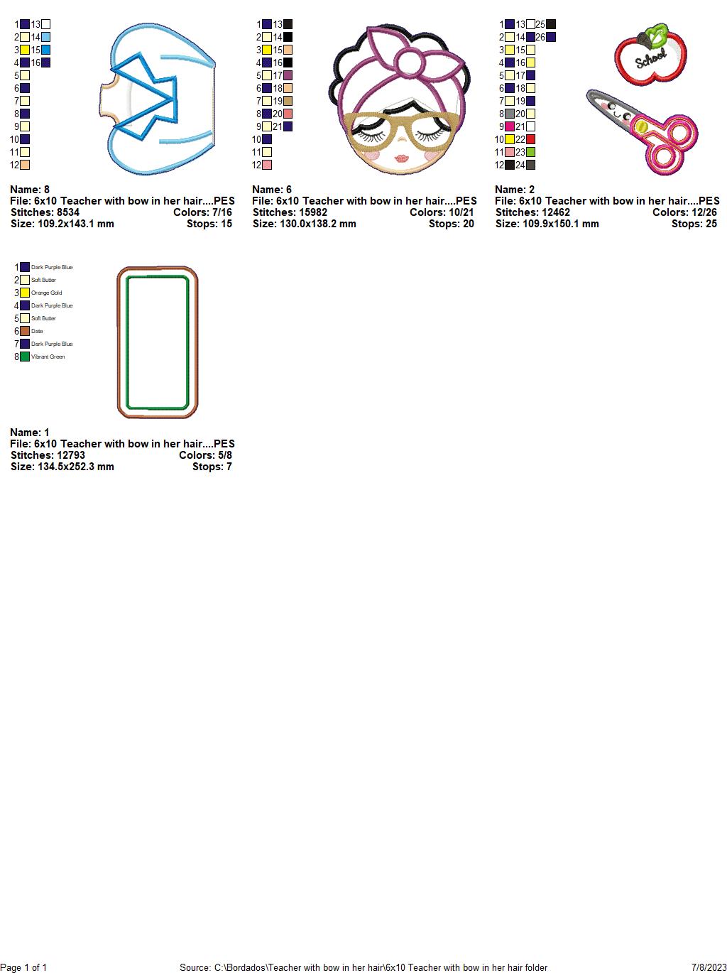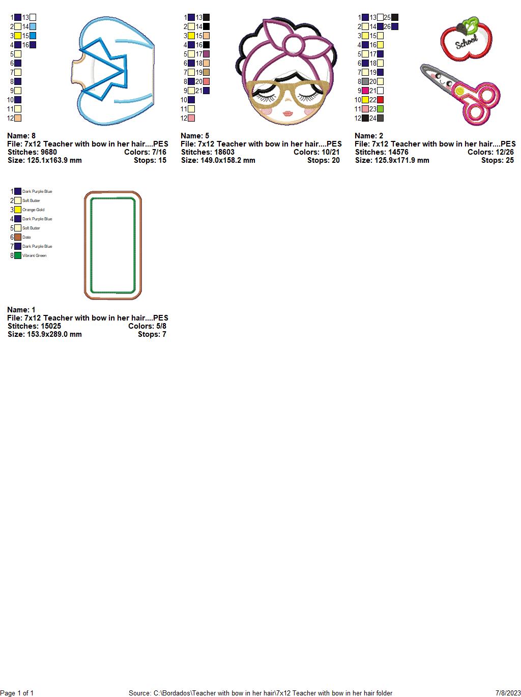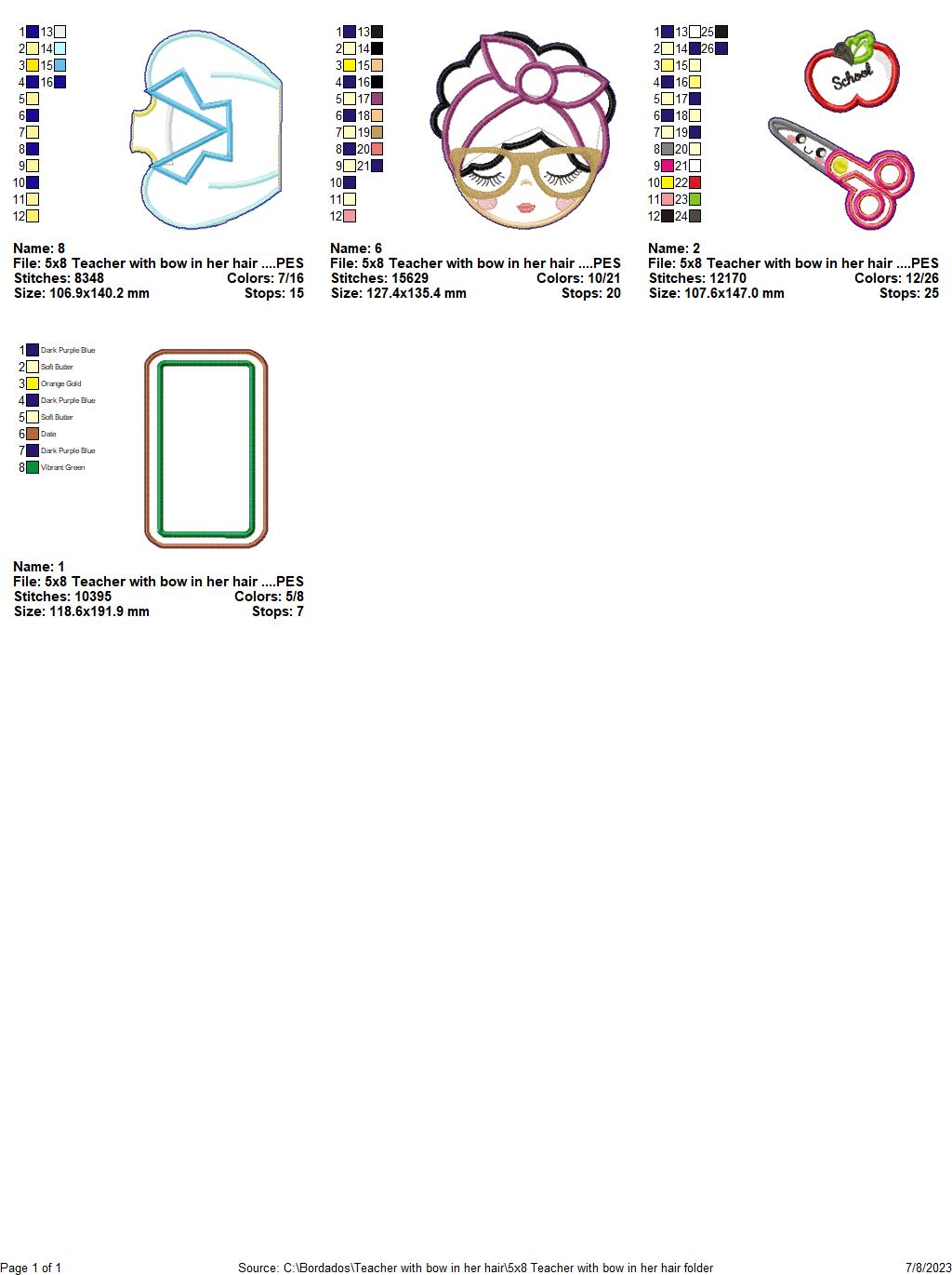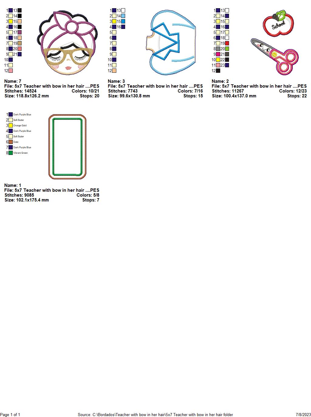 Teacher with Headband - ITH Project - Machine Embroidery Design