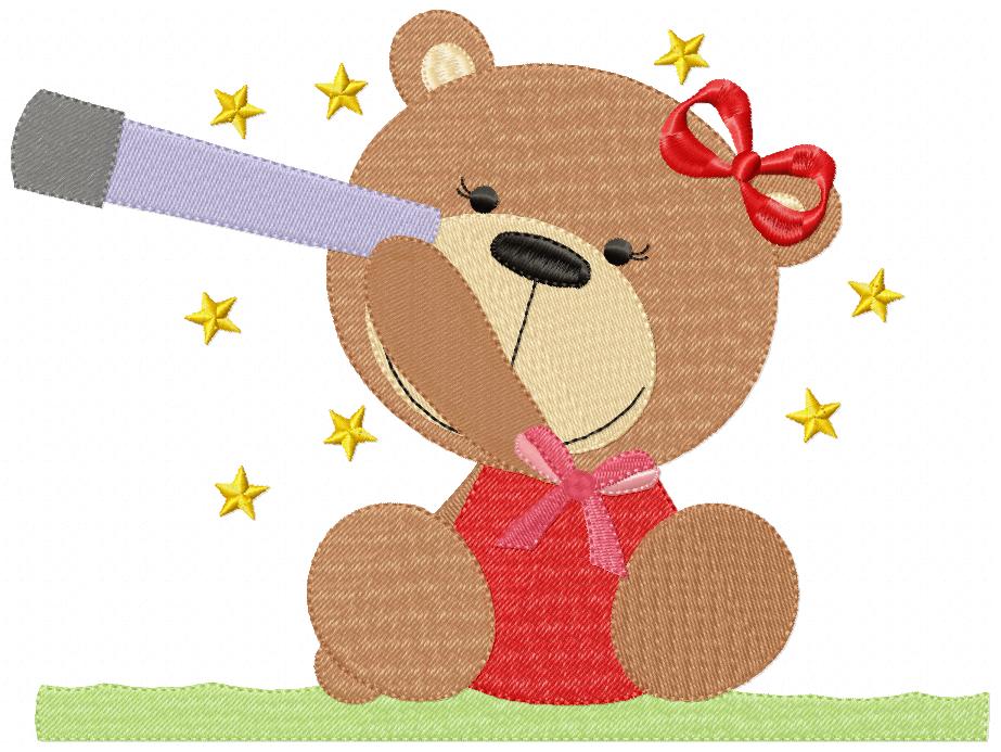 Teddy Bear Girl with Telescope - Fill Stitch