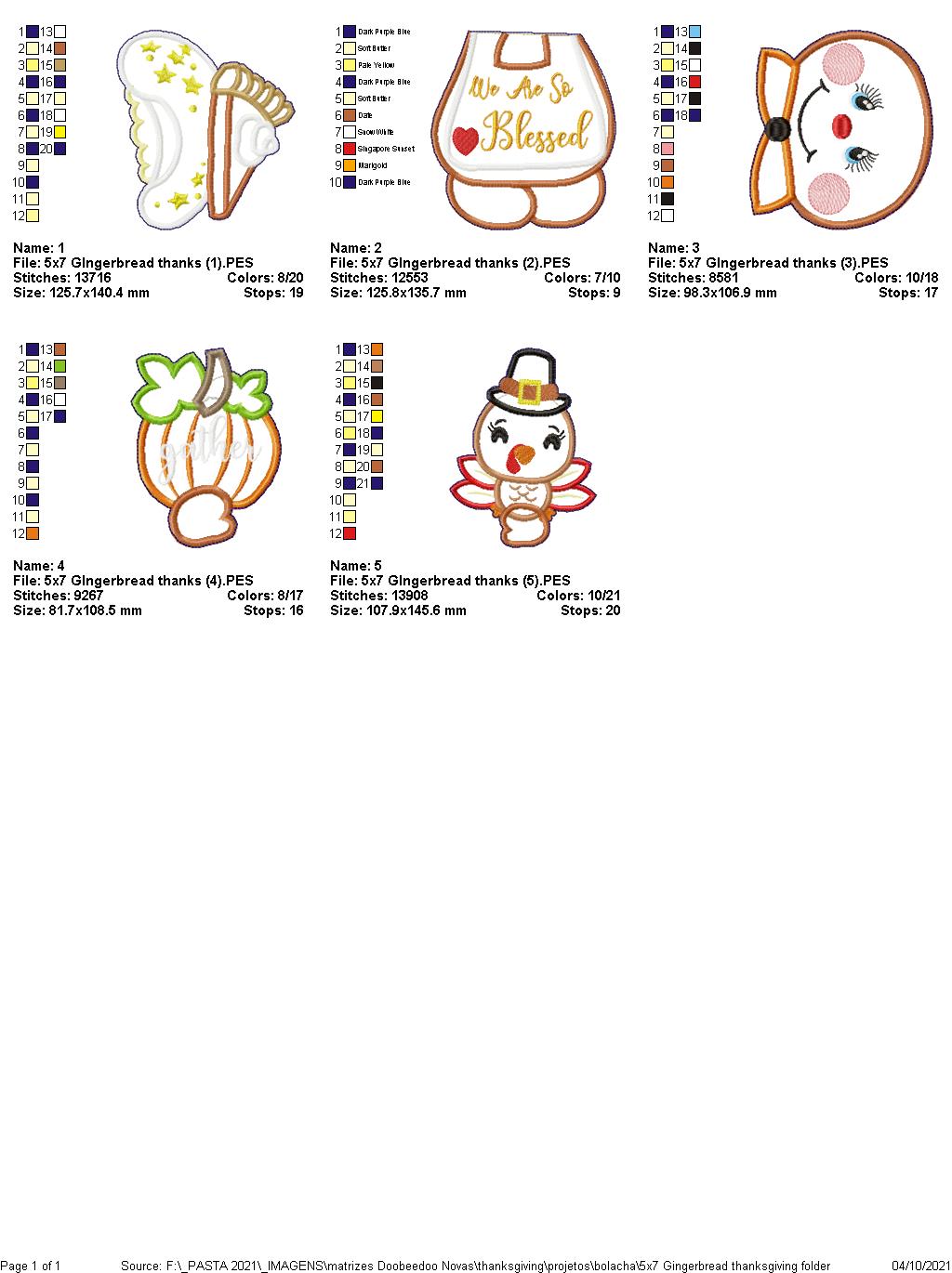Thanksgiving Gingerbread We are so Blessed Ornament - ITH Project - Machine Embroidery Design