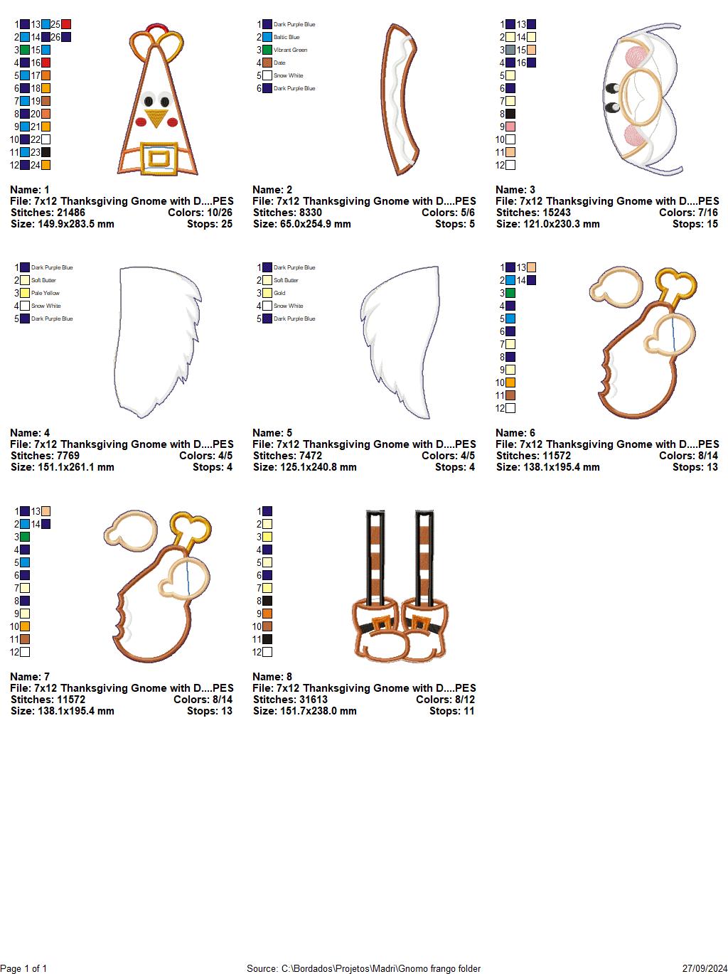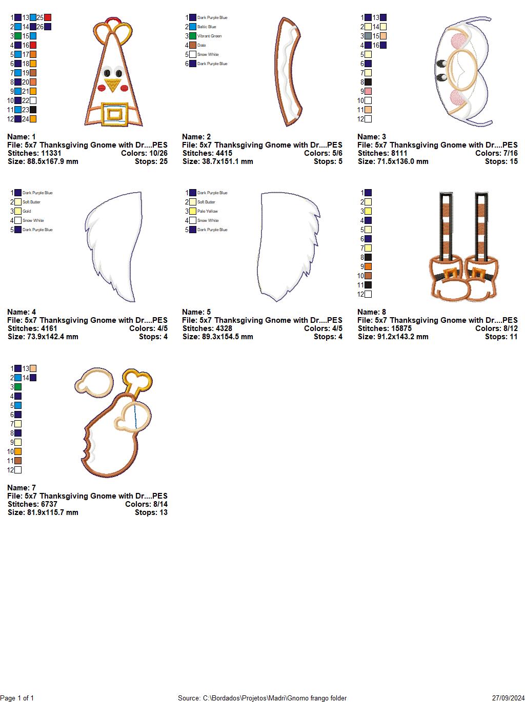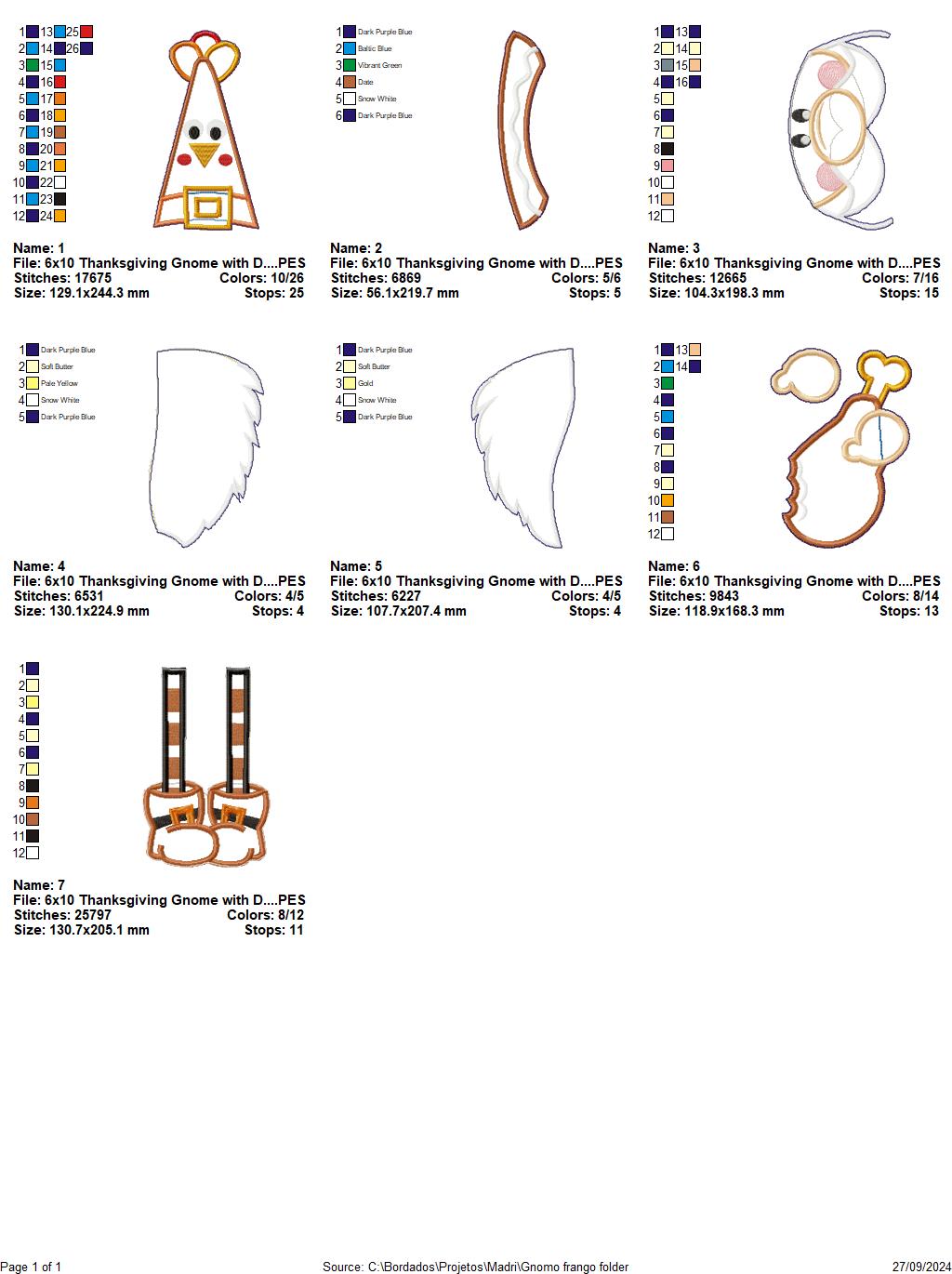 Thanksgiving Gnome with Drumstick - ITH Project - Machine Embroidery Design