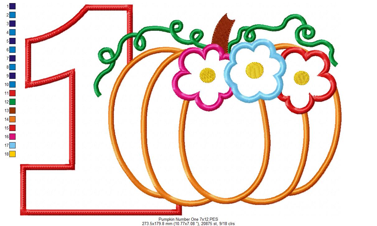 Thanksgiving Pumpkin Number 1 One 1st Birthday - Applique