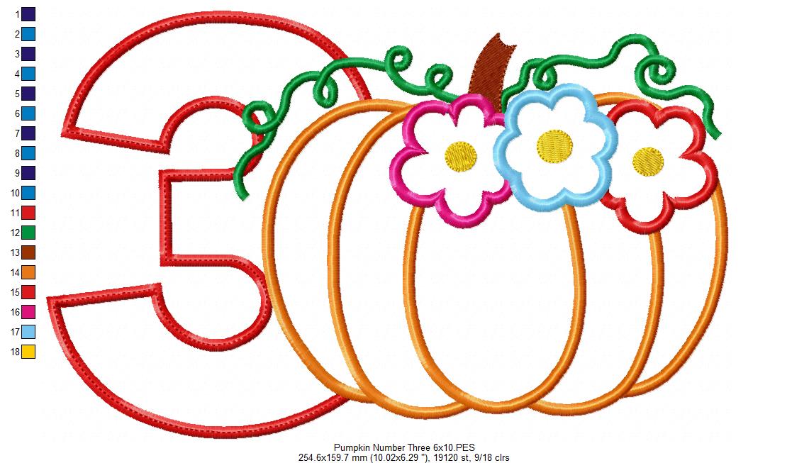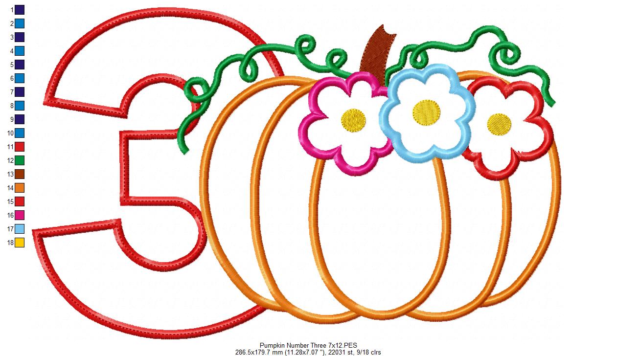 Thanksgiving Pumpkin Number 3 Three 3rd Birthday - Applique