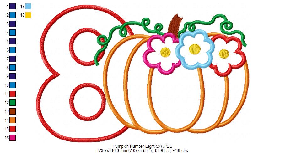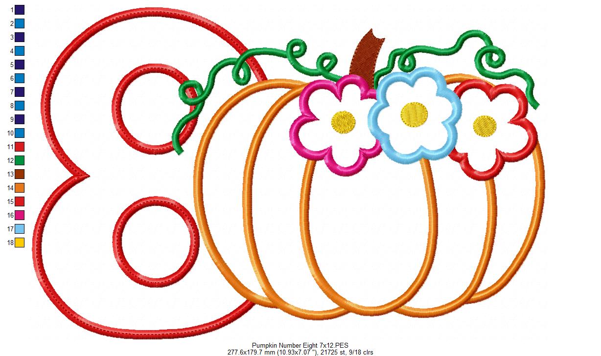 Thanksgiving Pumpkin Number 8 Eight 8th Birthday - Applique