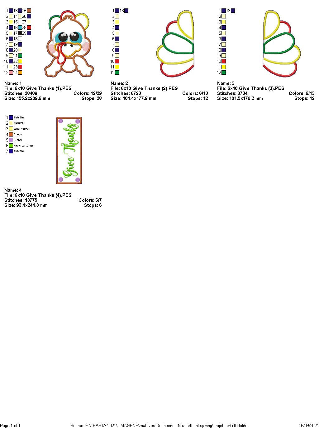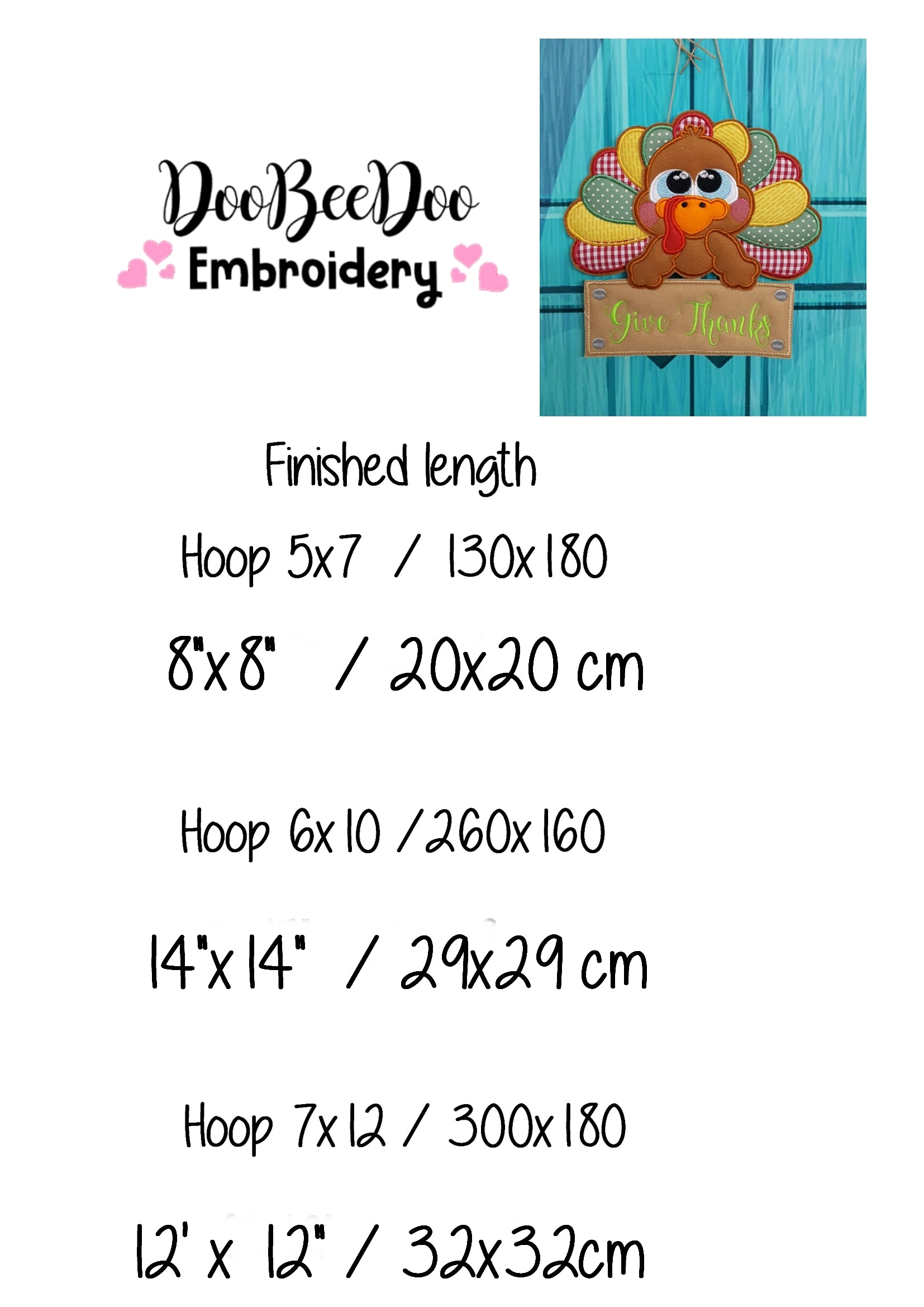 Thanksgiving Turkey Give Thanks Door Ornament - ITH Project - Machine Embroidery Design