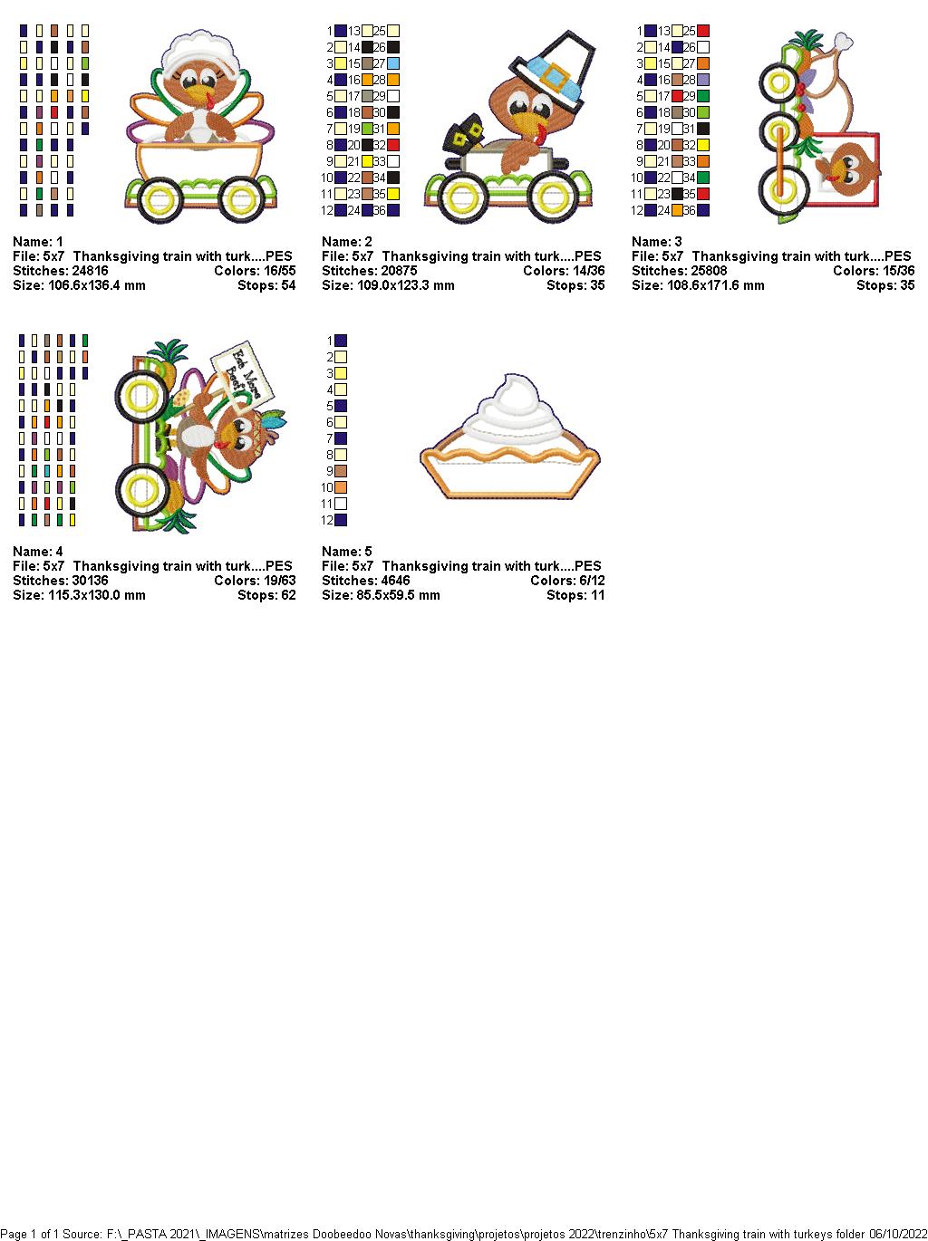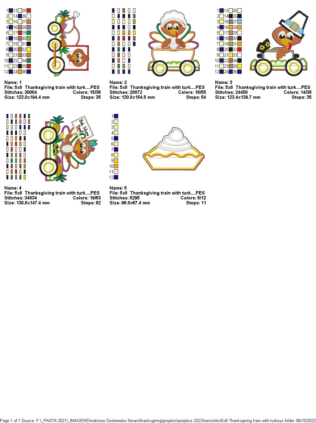 Turkey Train Thanksgiving Door Ornament - ITH Project - Machine Embroidery Design