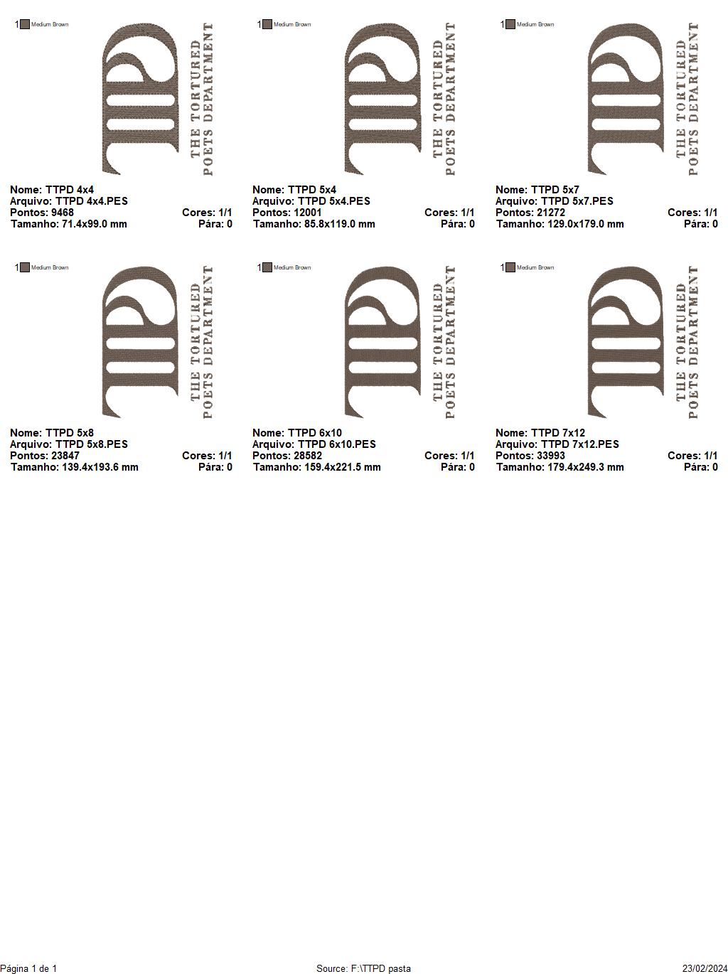 The Tortured Poets Department Taylor Swift - Fill Stitch - Machine Embroidery Design