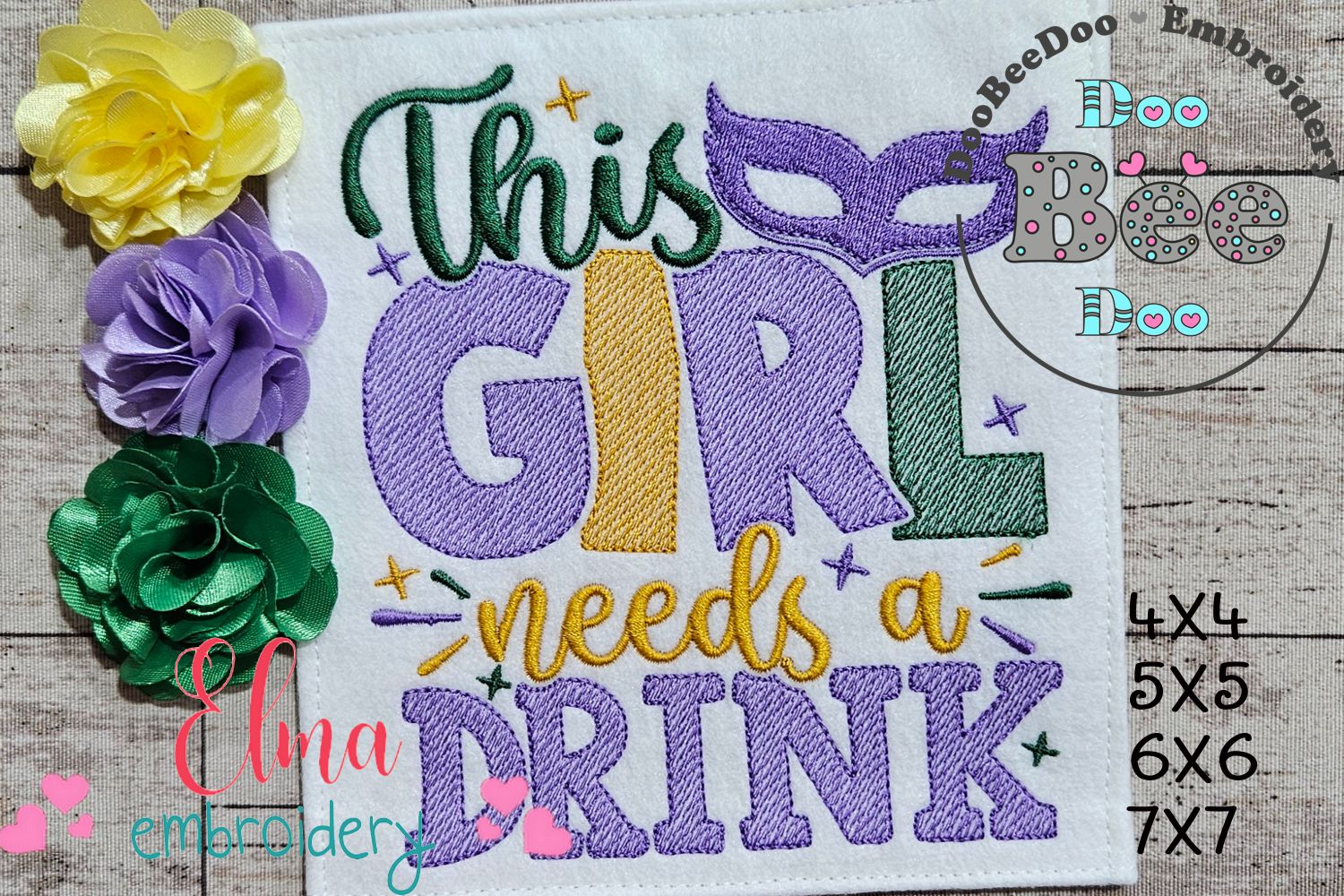 Get ready to let the good times roll with our This Girl Needs a Drink embroidery design! Perfect for Mardi Gras or any celebration, this design comes in 4 sizes and is an instant download. Whether you're a seasoned pro or just starting out, this machine embroidery design will have you stitching up a good time!