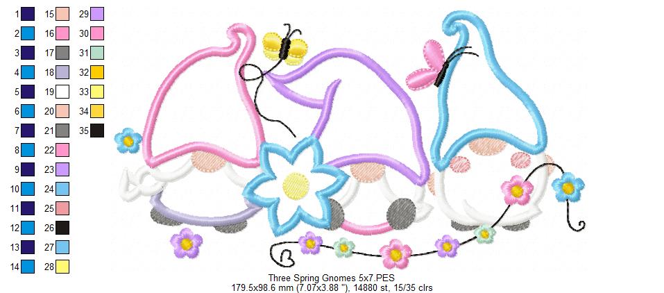 Three Spring Gnomes with Flowers - Applique