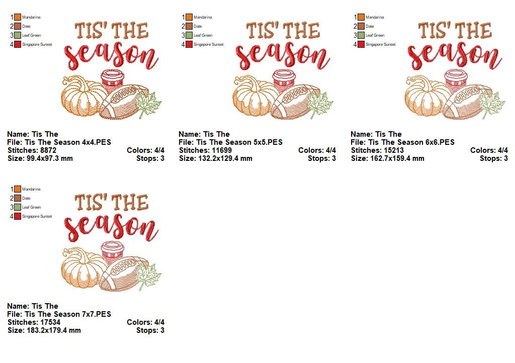 Get into the fall spirit with Tis' The Season - Sketch Stitch - Machine Embroidery Design! This instant download features playful designs of pumpkins, footballs, leaves, and lattes in 4 sizes. Add some autumn flair to your embroidery projects with this fun and quirky machine embroidery design.
