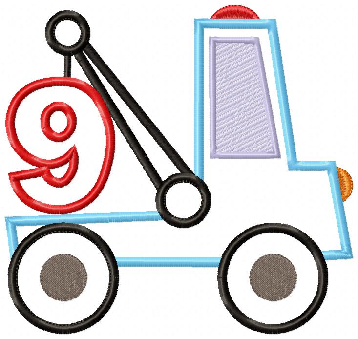 Tow Truck Birthday Number 9 Nine 9th Birthday - Applique