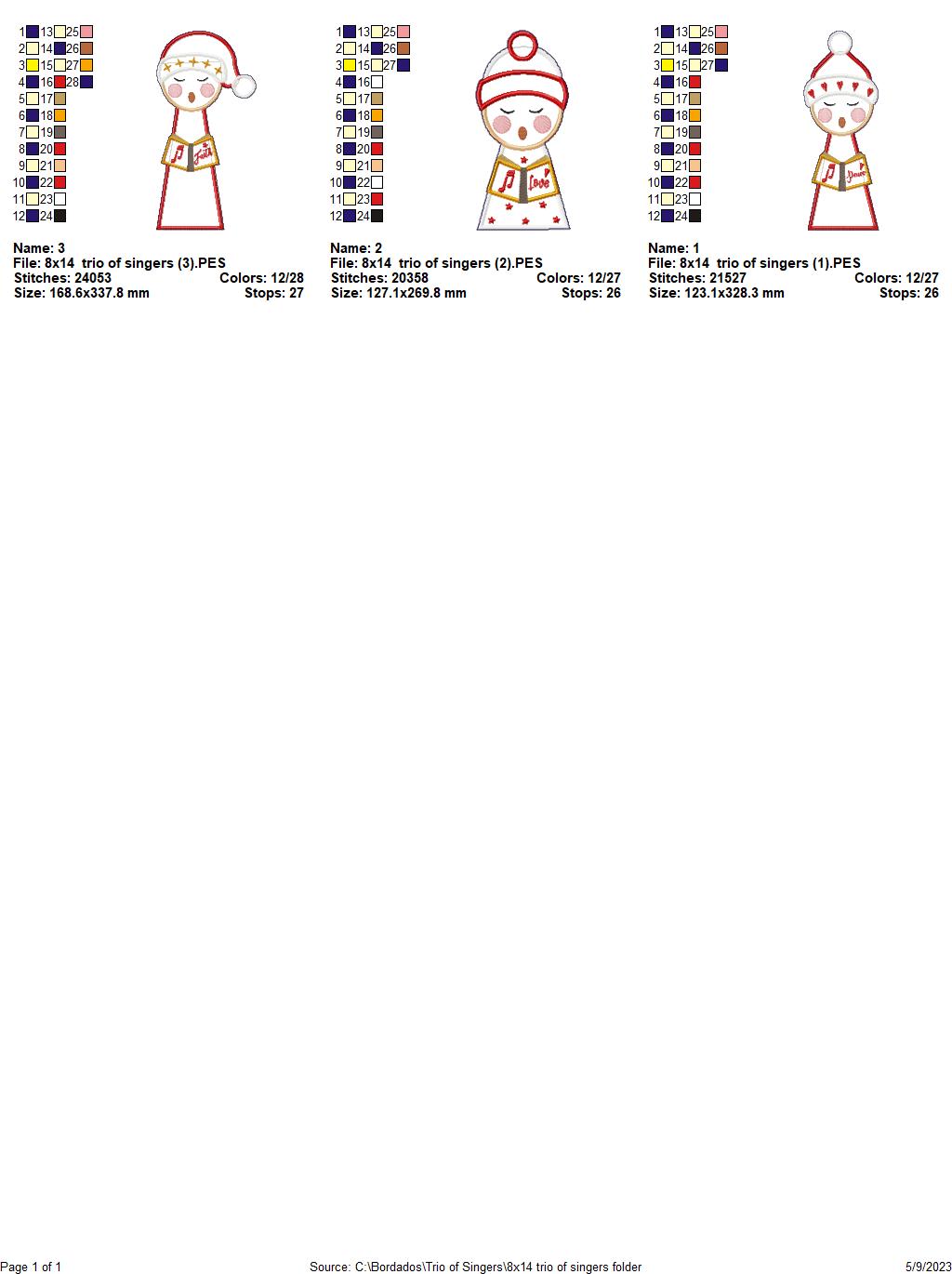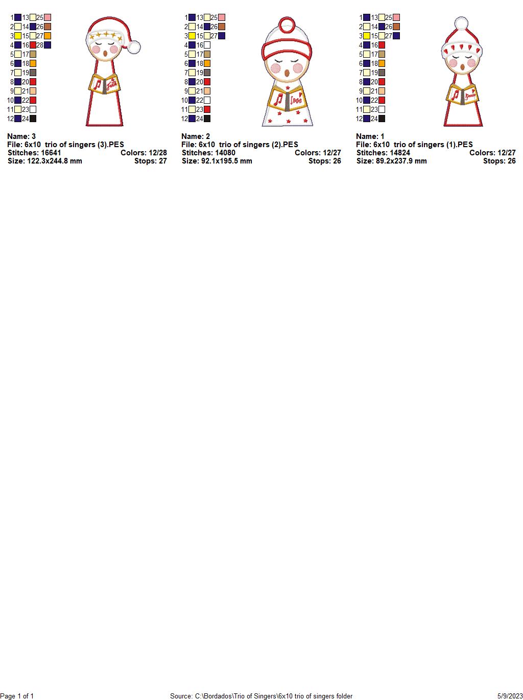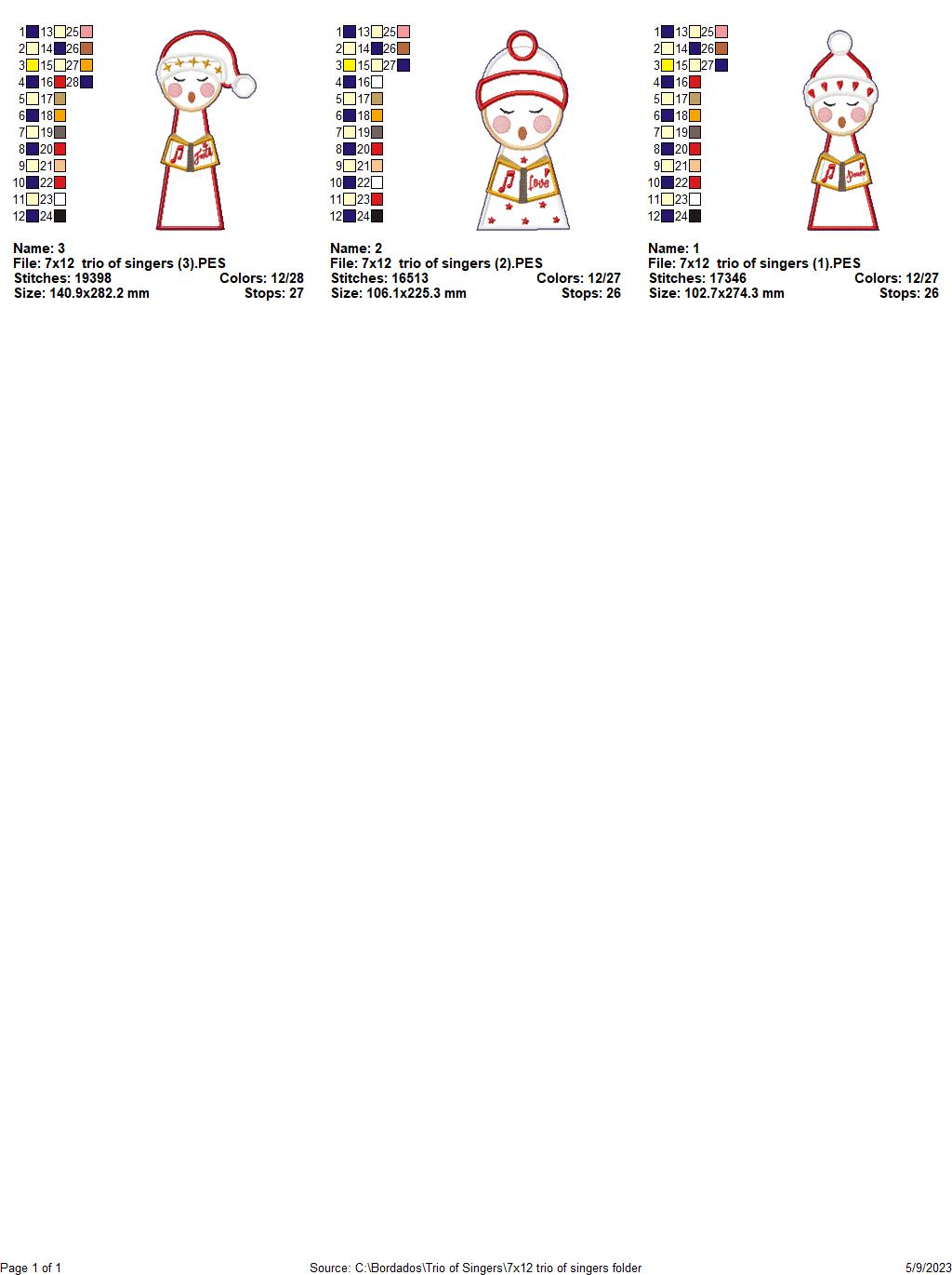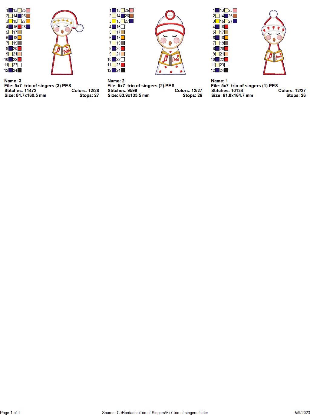 Trio of Christmas Singers - ITH Project - Machine Embroidery Design