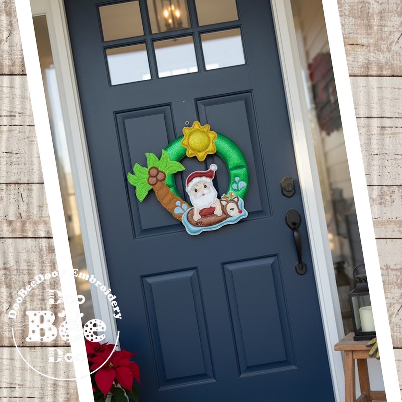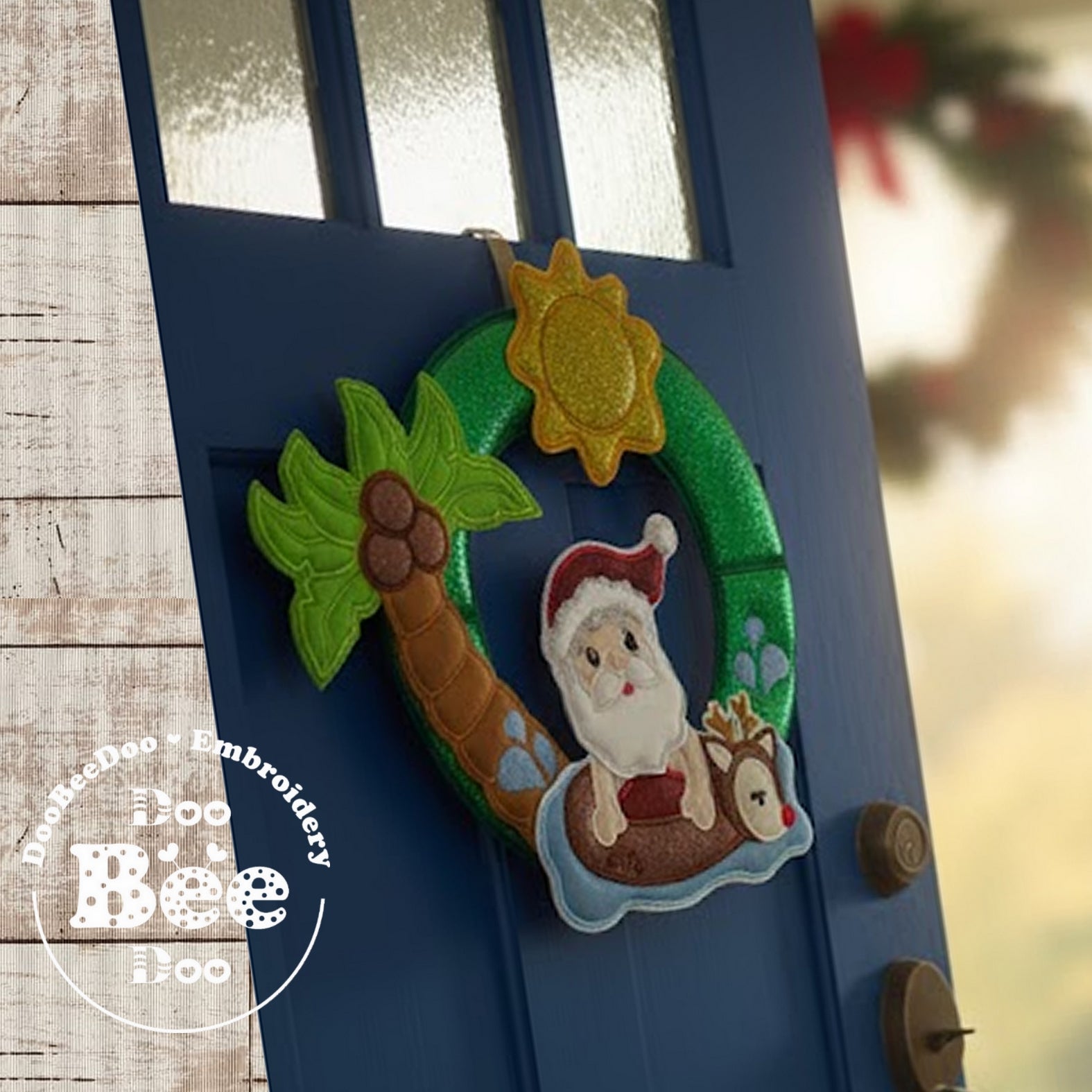Ho, ho, ho! Make your holiday decor truly unique with our Tropical Santa Claus Christmas Wreath - ITH Project! This machine embroidery design is an instant download, making it easy to add a touch of whimsy to your home. Give your traditional wreath a vacation and embrace the quirky side of the season.