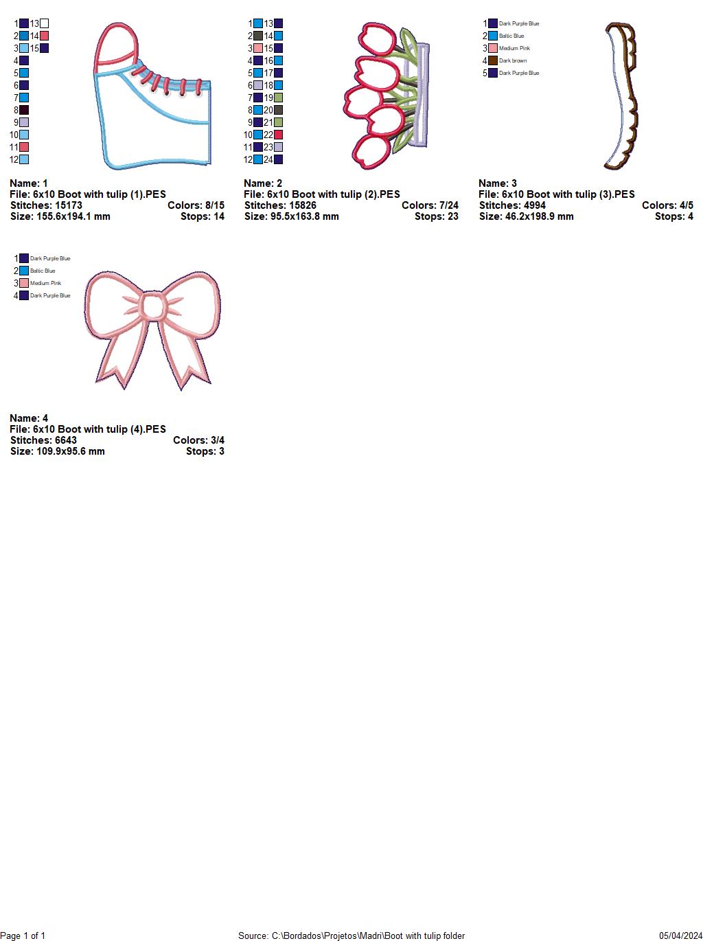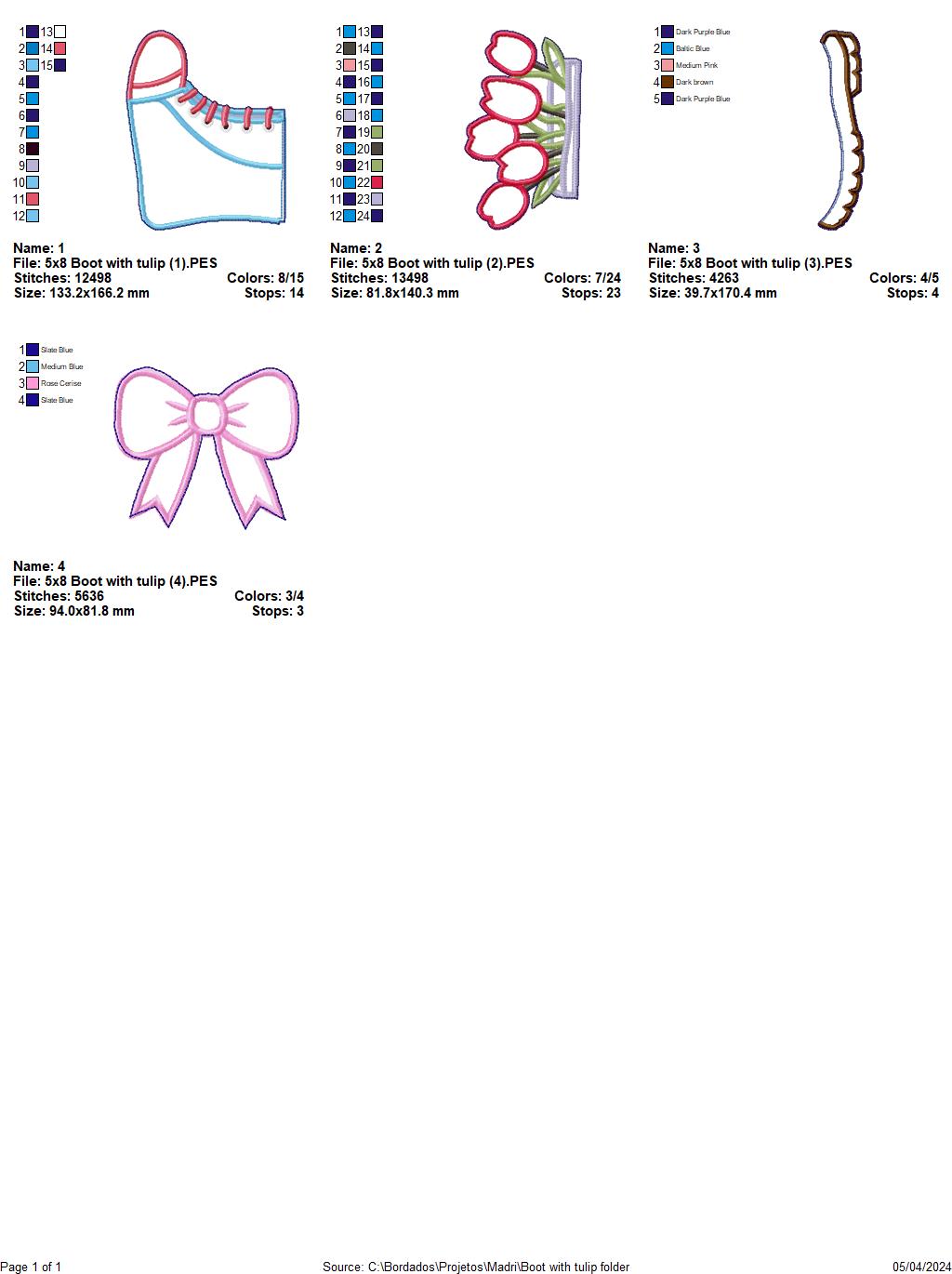 Tulip boots Spring - ITH Project - Machine Embroidery Design