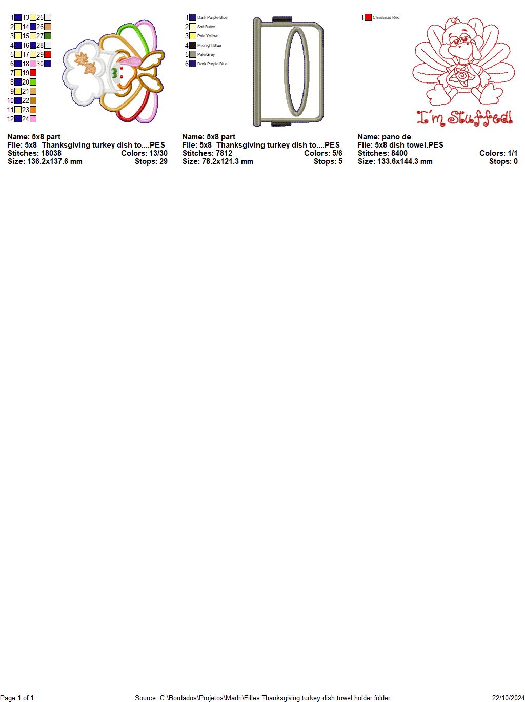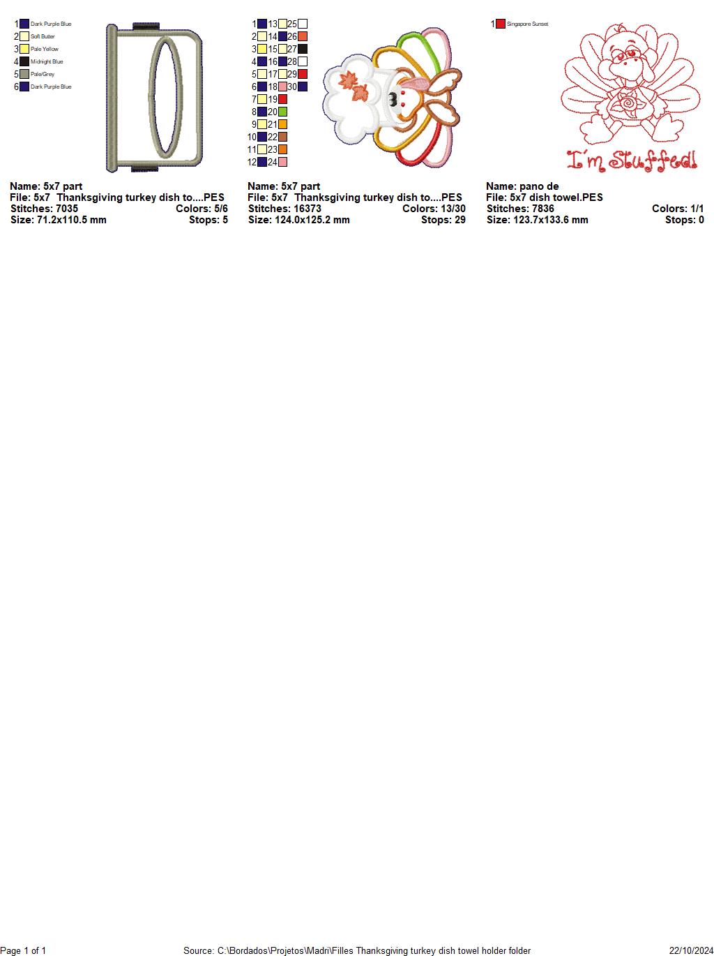Turkey Thanksgiving Dish Cloth Holder - ITH Project - Machine Embroidery Design