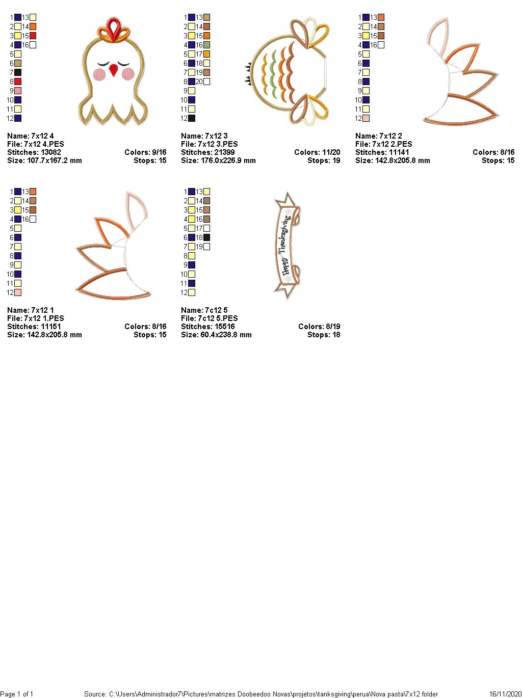 Turkey Thanksgiving Ornament - ITH Project - Machine Embroidery Design