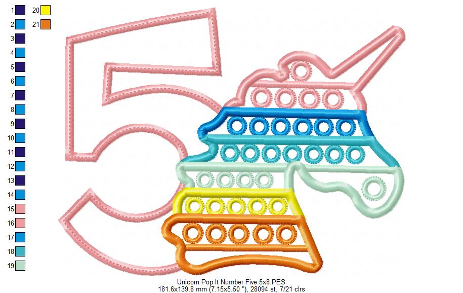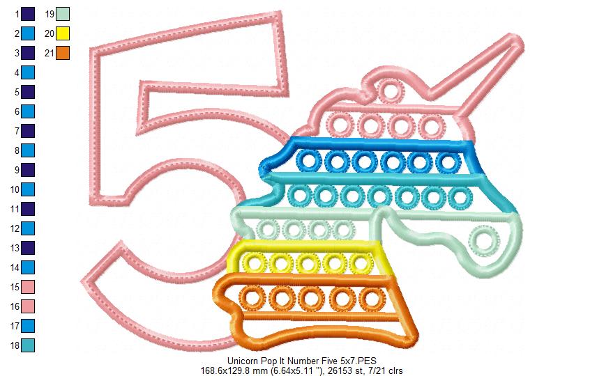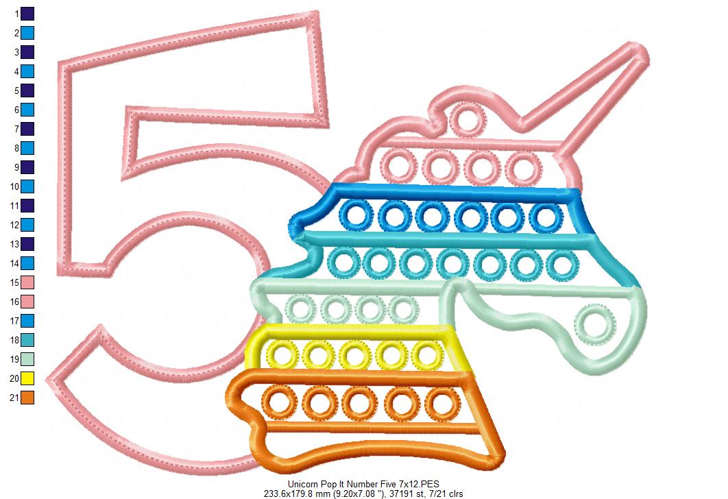 Unicorn Pop It Birthday Number Five 5th Birthday - Applique