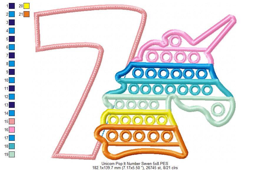 Unicorn Pop It Birthday Number Seven 7th Birthday - Applique - Machine Embroidery Design