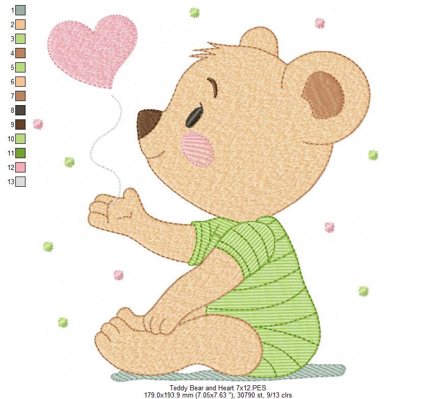 Valentine Baby Bear Heart - Fill Stitch
