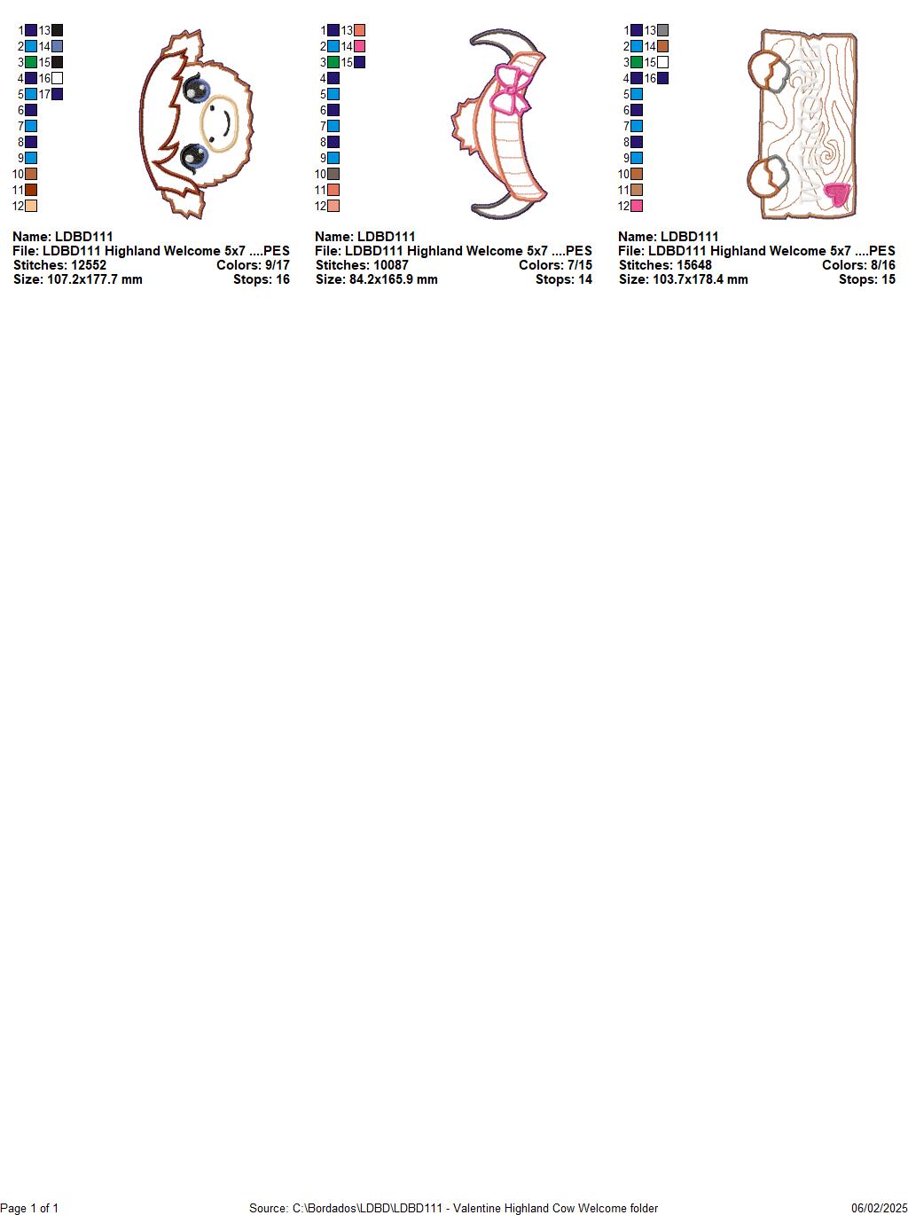 Valentine Highland Cow Welcome Sign - ITH Project - Machine Embroidery Design