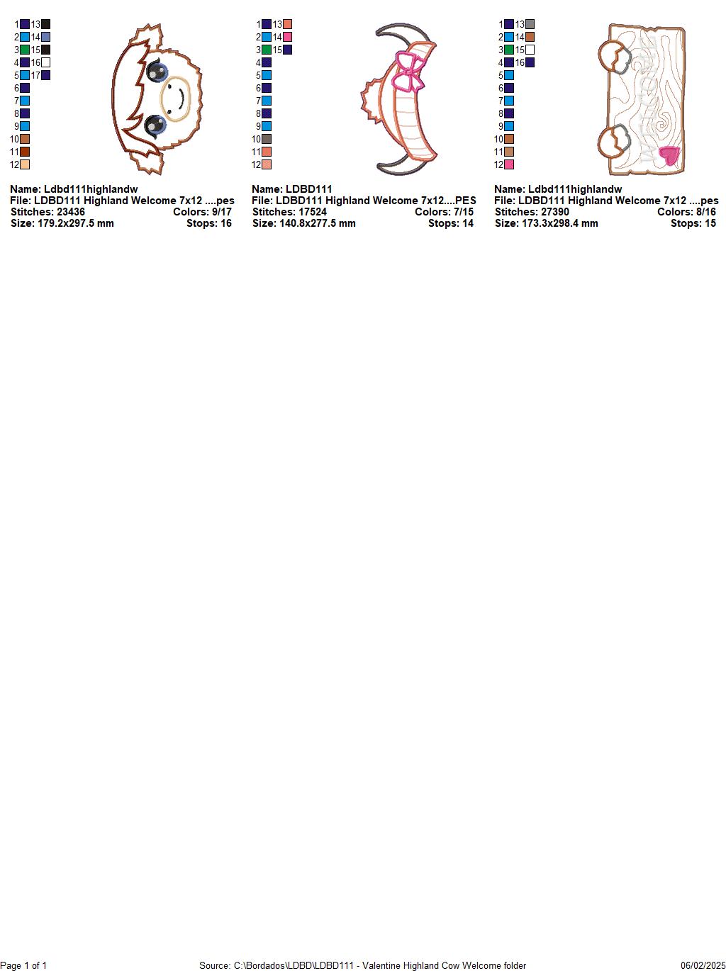 Welcome guests in style with our Valentine Highland Cow Welcome Sign. This unique machine embroidery design is available for instant download, making it easy for you to add a personal touch to your home decor. It's perfect for any lover of cute and cozy accents - get yours today!