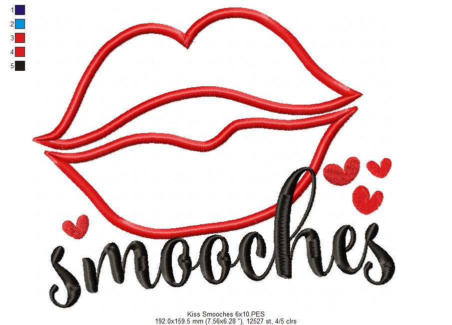Valentines Day Smooches Kiss - Applique