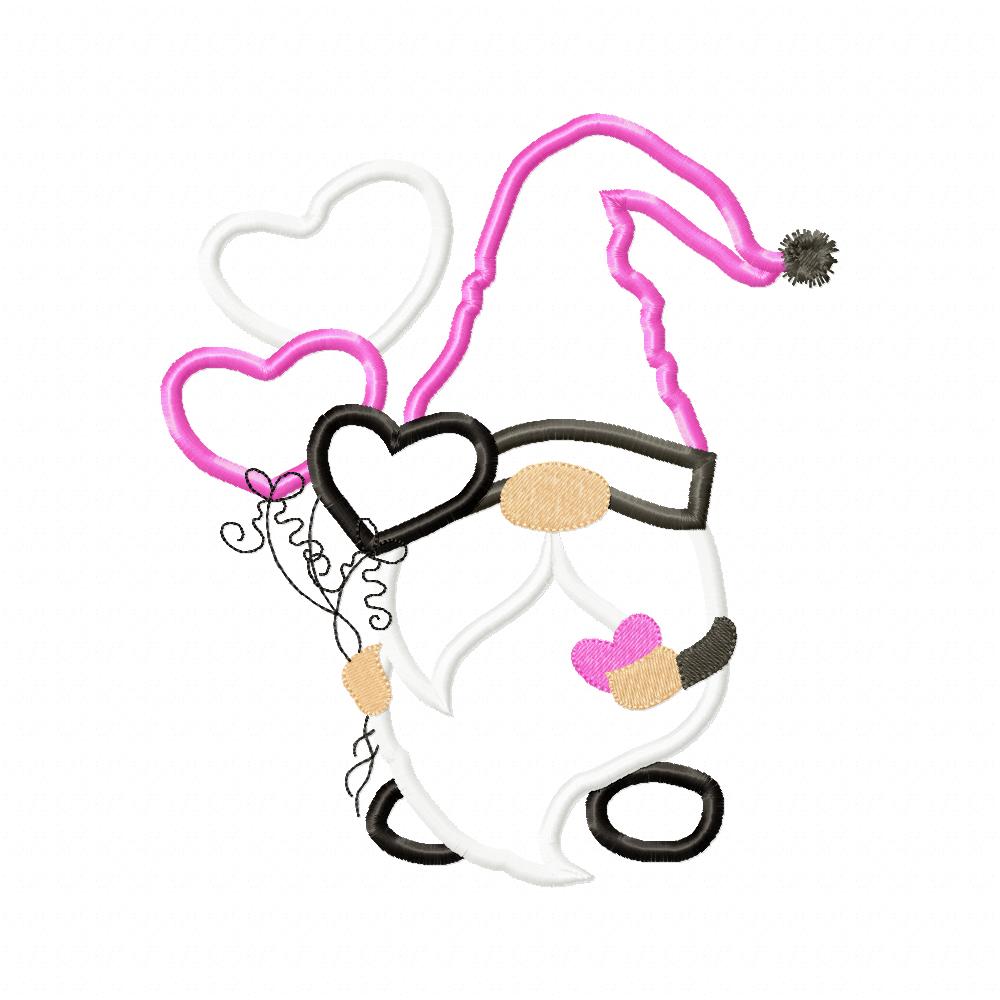 Valentines Gnome Boy with Balloons - Applique Embroidery