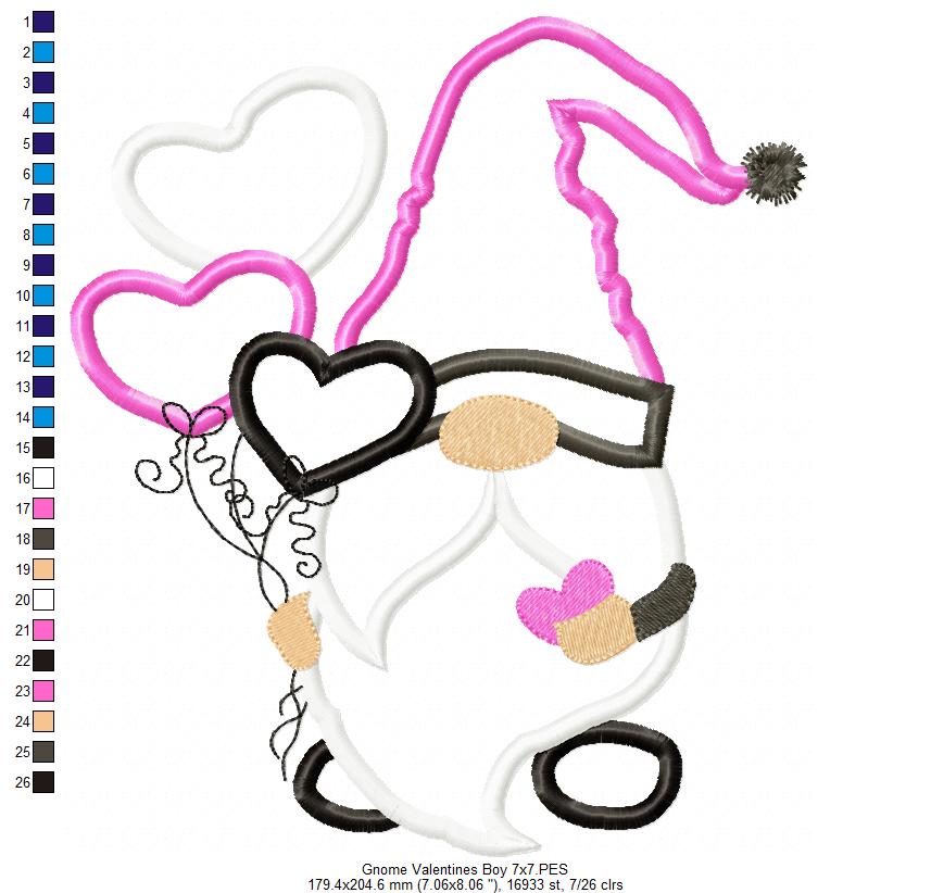 Valentines Gnomes Girl and Boy - Applique - Set of 2 designs