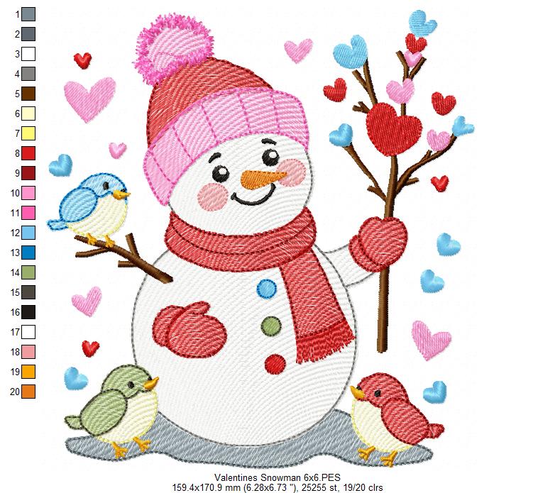 "Surprise your loved ones with our Valentine's Snowman and Birds embroidery design! Available in 5 sizes, this Rippled Stitch design will add a touch of whimsy to your projects. Instant download for easy use. Love at first stitch!"