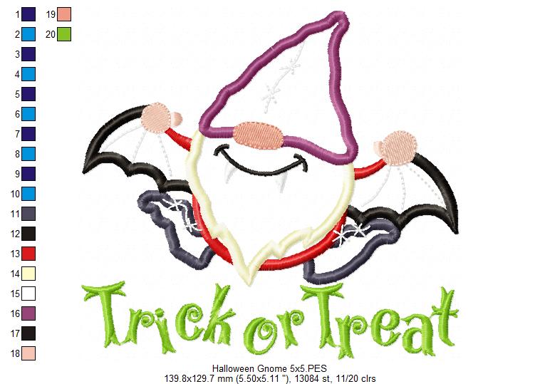 Vampire Gnome Trick or Treat - Applique - Machine Embroidery Design