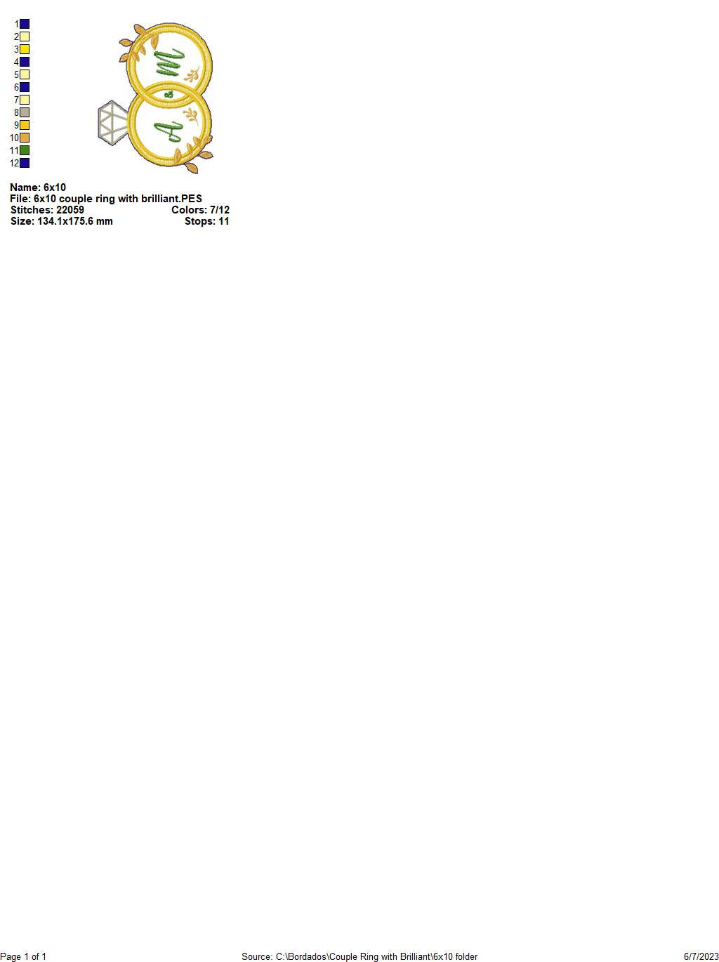 Wedding Rings Ornament with Brilliant - ITH Project - Machine Embroidery Design