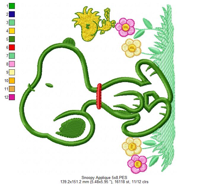 This delightful White Dog and Yellow Bird Applique Machine Embroidery Design is just what you need to add some fun and zany style to your project! The set features Snoopy in 6 sizes, so you'll have all the sass and style you need! Download instantly and start stitching!
