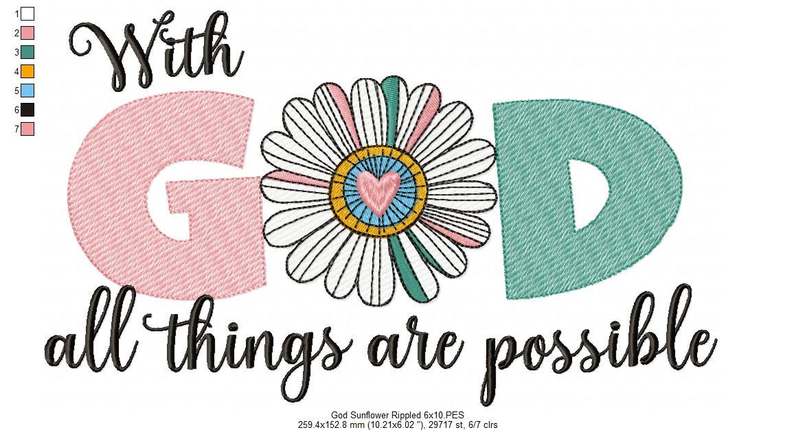 With God All Things Are Possible - Rippled Stitch - Machine Embroidery Design