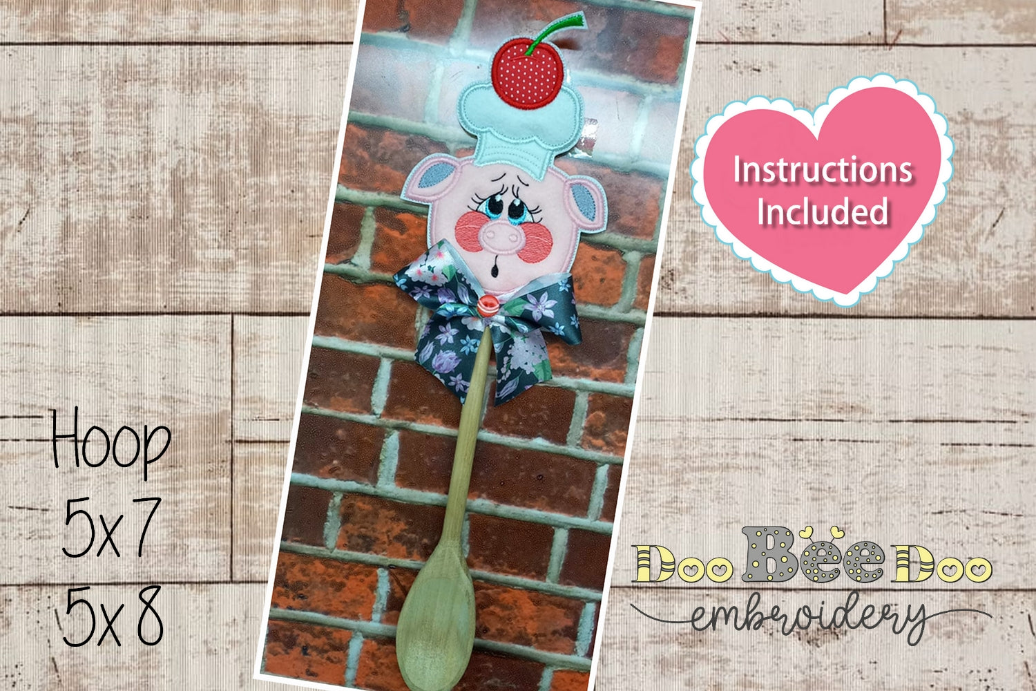 Wood Spoon Pig Apply - ITH Project - Machine Embroidery Design